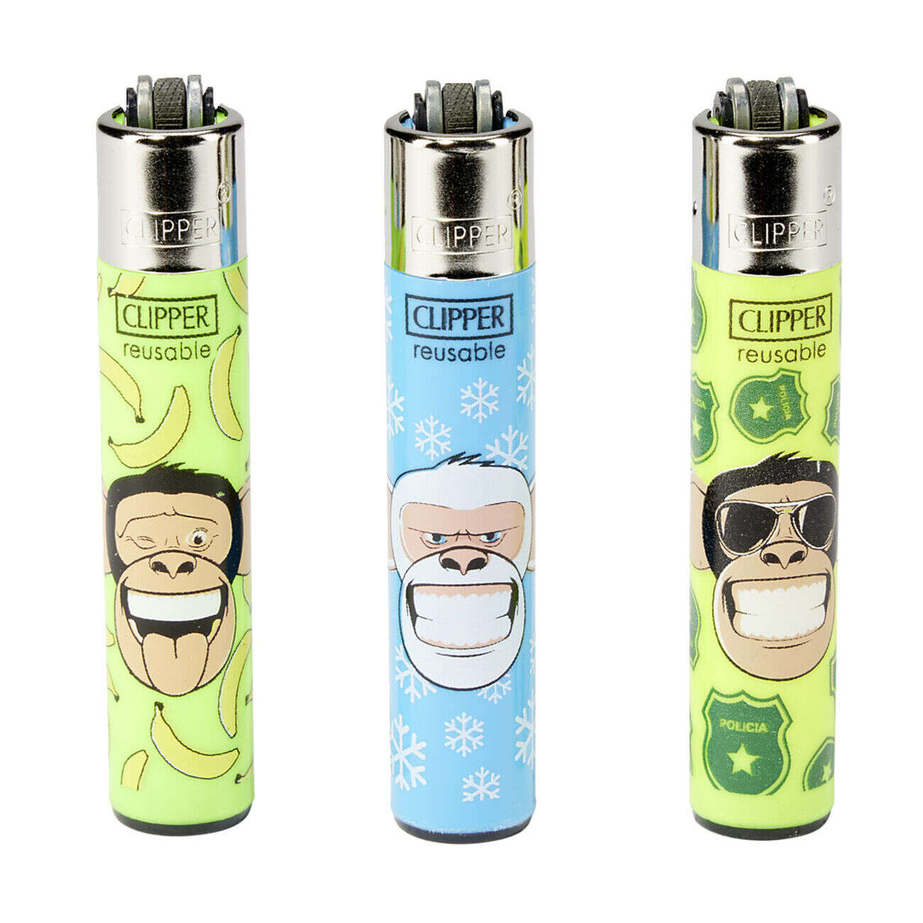 Briquet Clipper collection x3 réutilisable motif singe