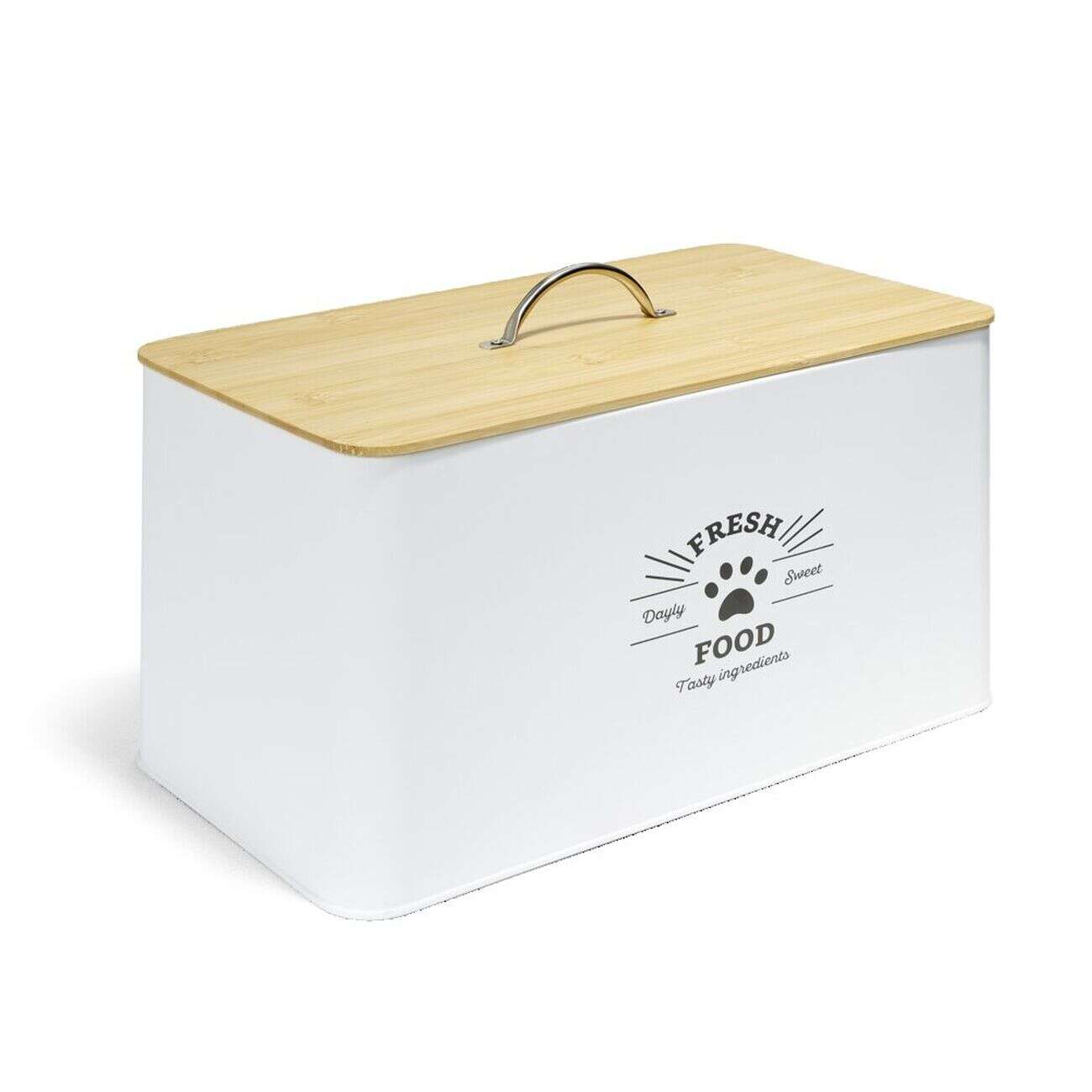 Boîte à croquettes en métal avec couvercle en bambou