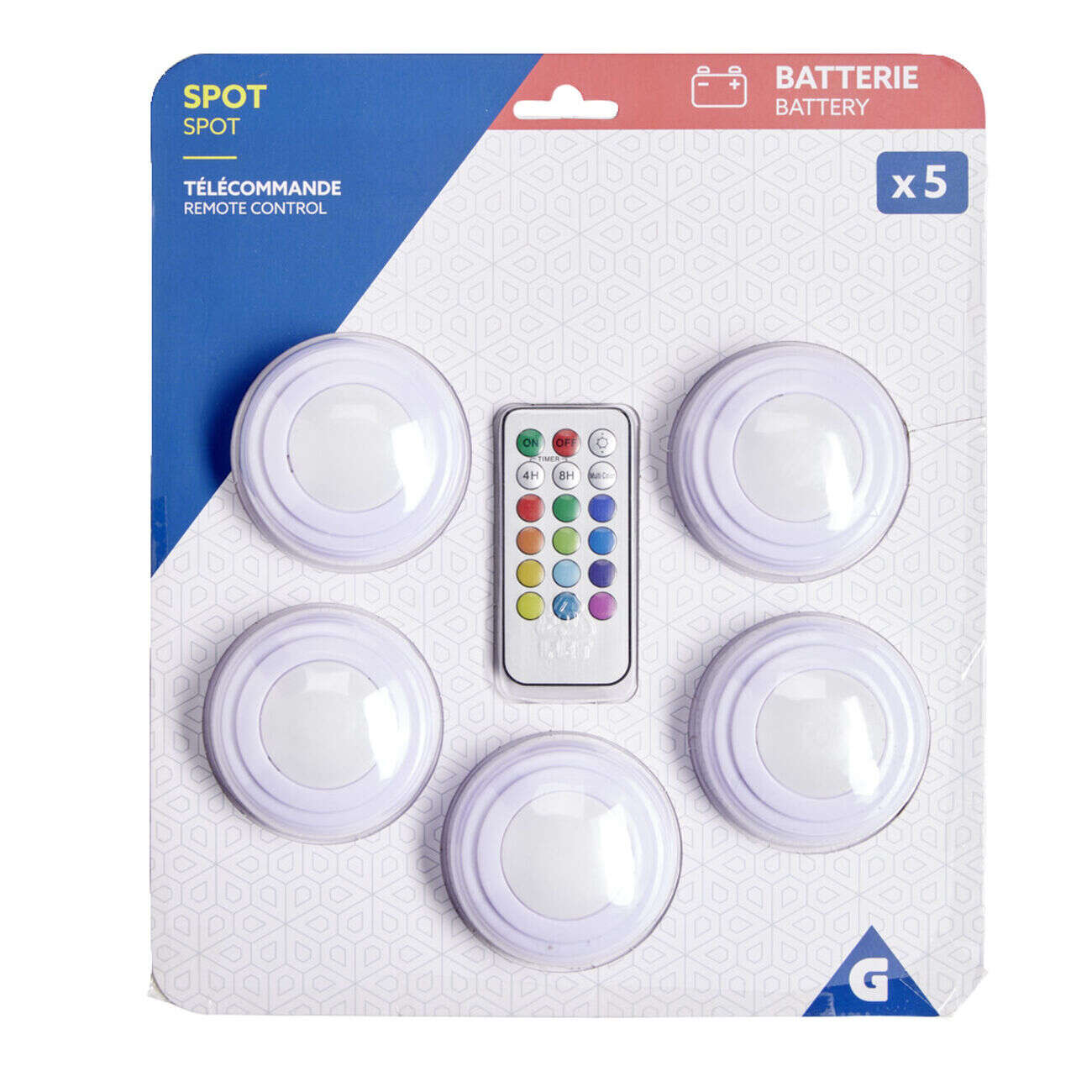 Spot LED x5 RGB avec télécommande Ø6,8cm