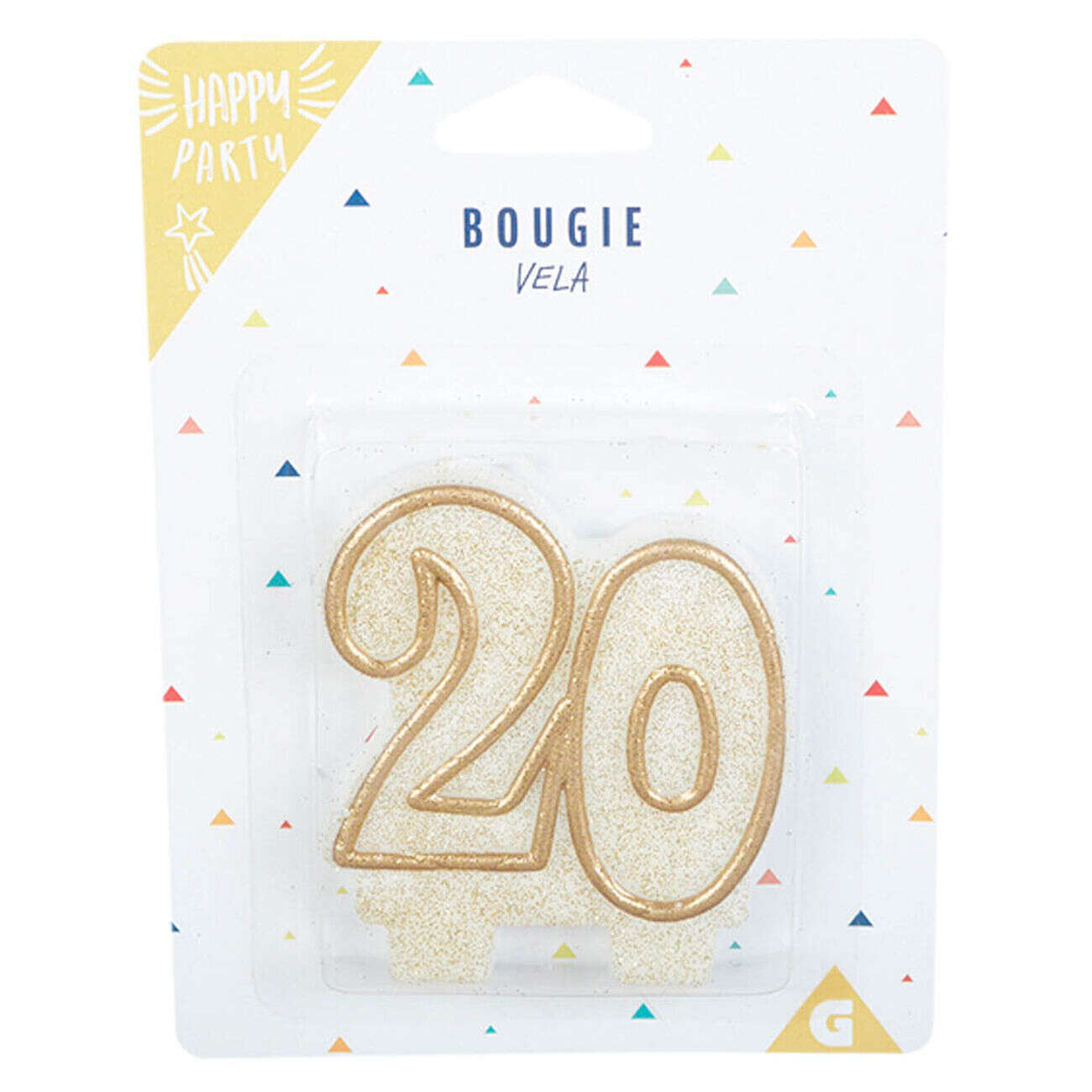Bougie anniversaire chiffre 20 doré pailleté