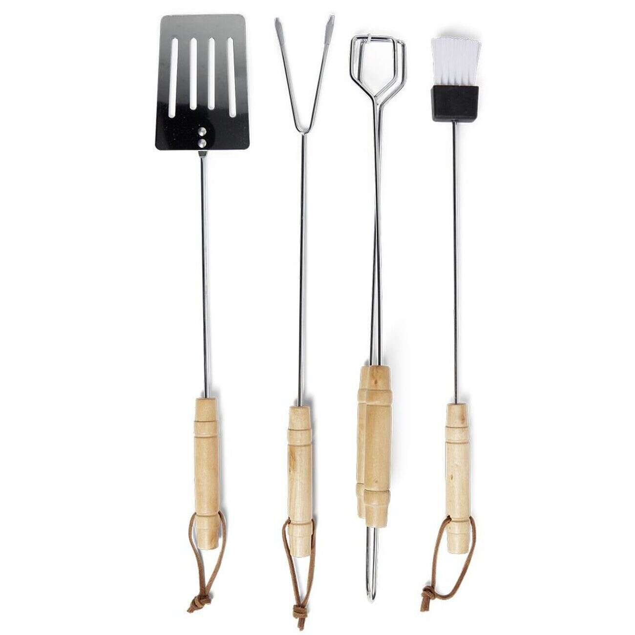 Lot de 4 ustensiles barbecue en acier chromé et bois