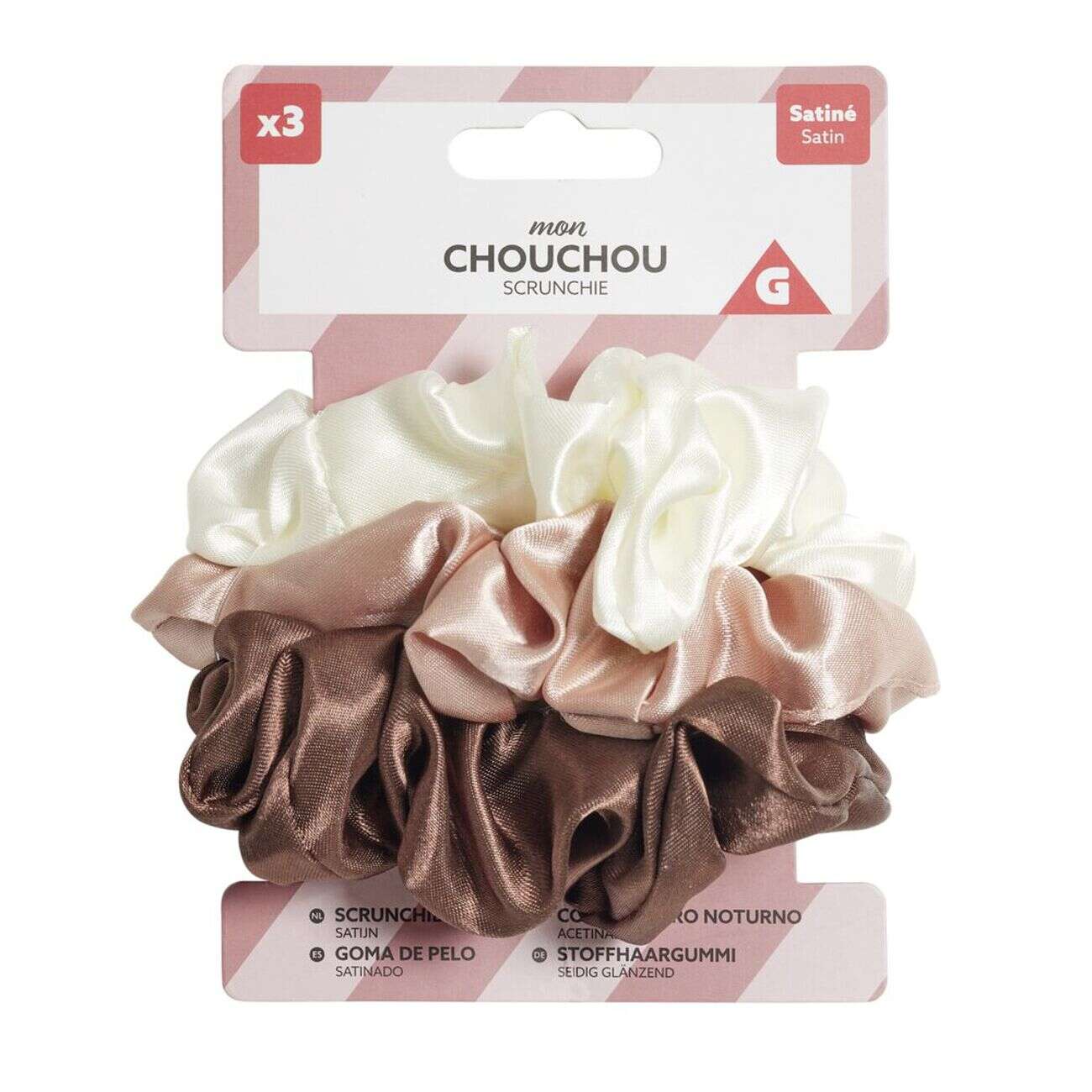Chouchou à cheveux x3 en tissu satiné L10,5cm