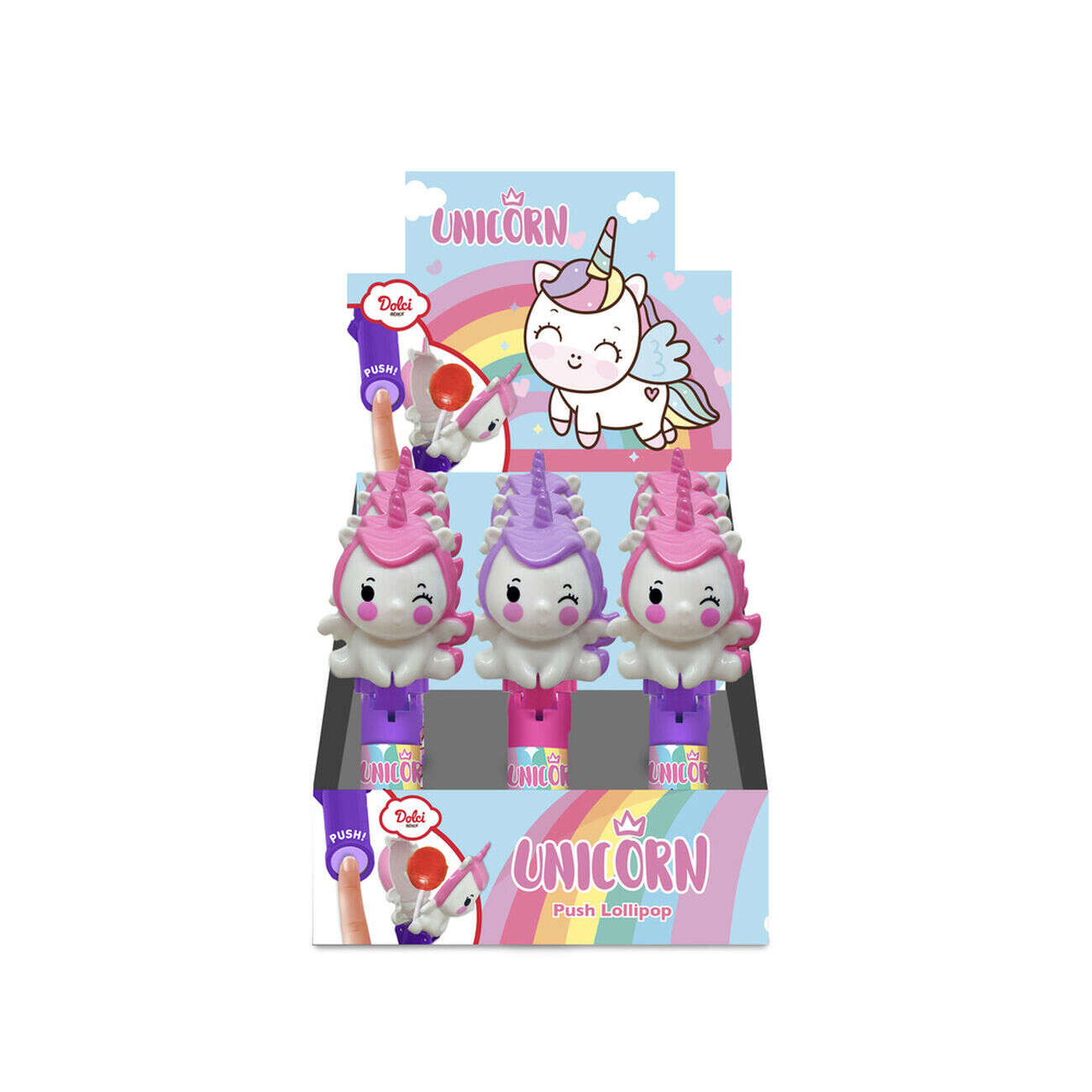 Bonbon sucette pop-up forme licorne rose ou violet