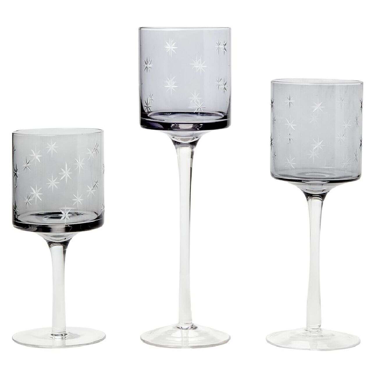 Photophore de Noël en verre sur pied gris argenté x3