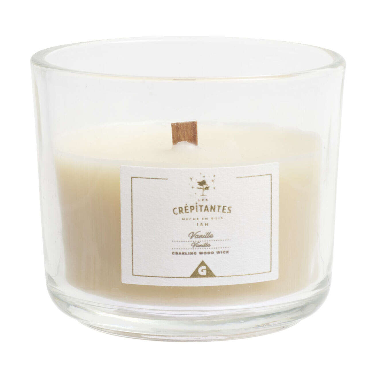 Bougie crépitante mèche en bois senteur vanille 15H