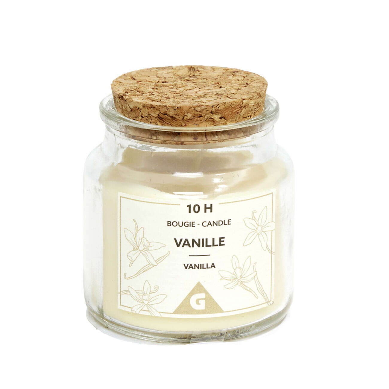 Bougie dans verre et bouchon liège Ø6xH6,5cm (4 modèles)