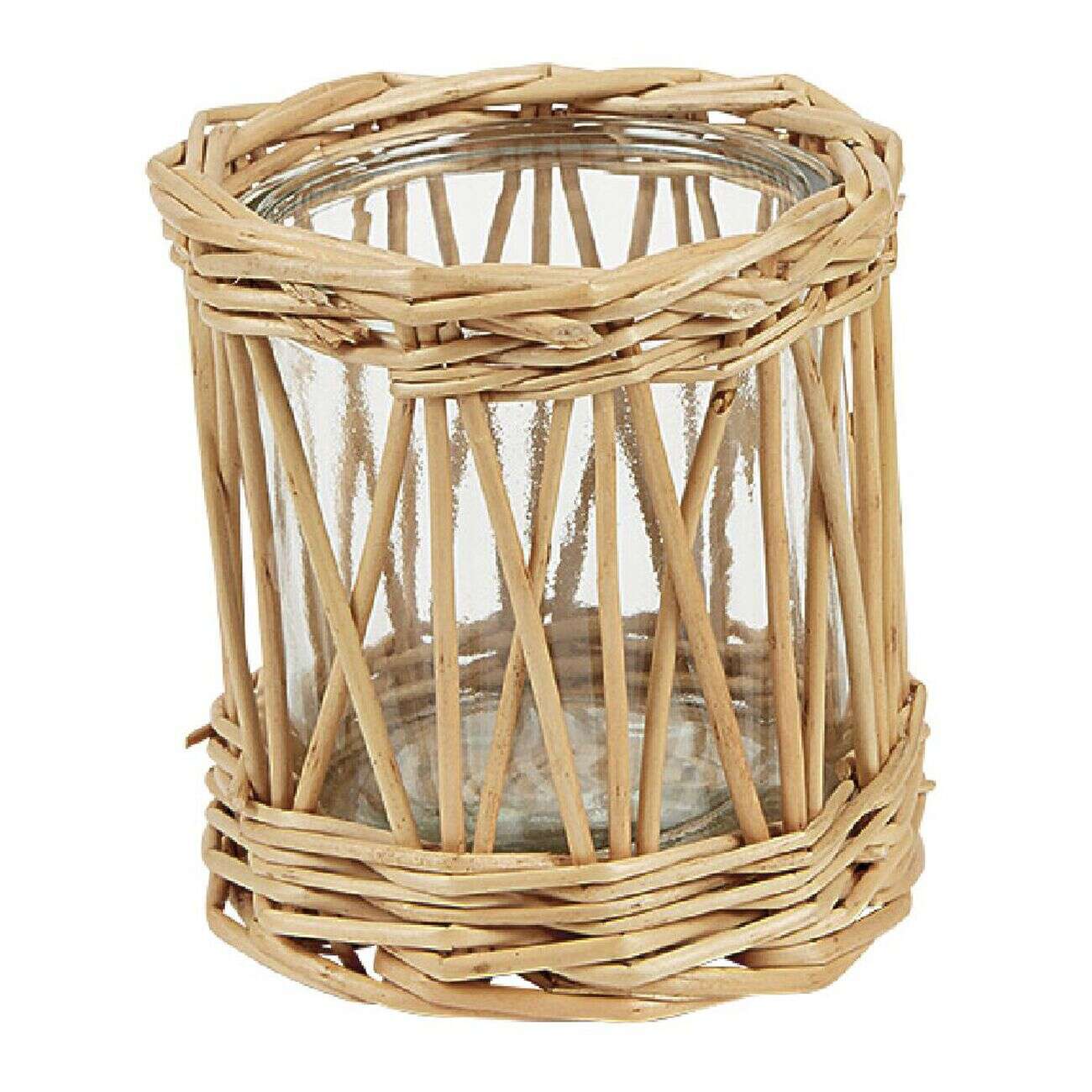 Photophore en verre et rotin tressé