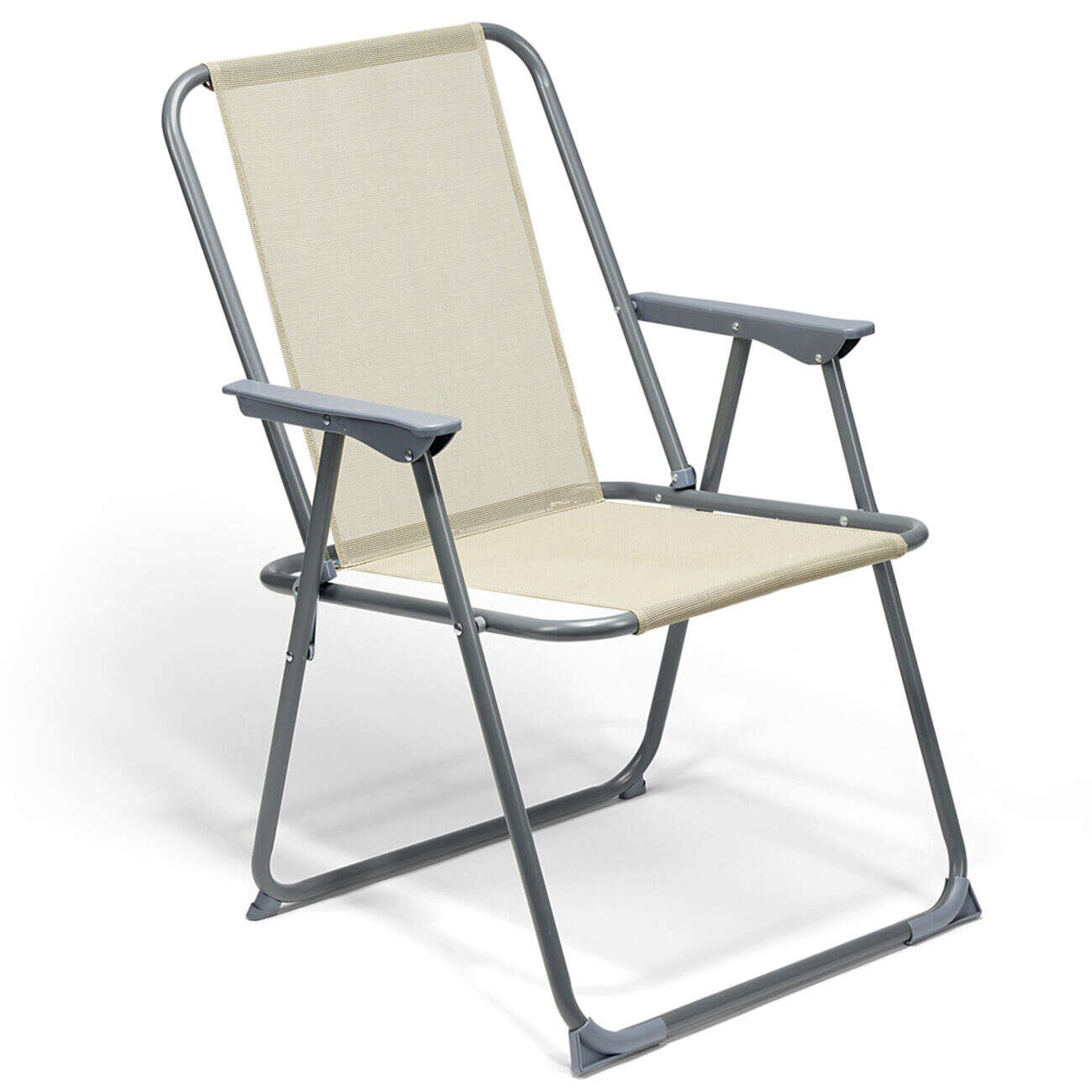 Fauteuil de camping pliant métal et textilène beige