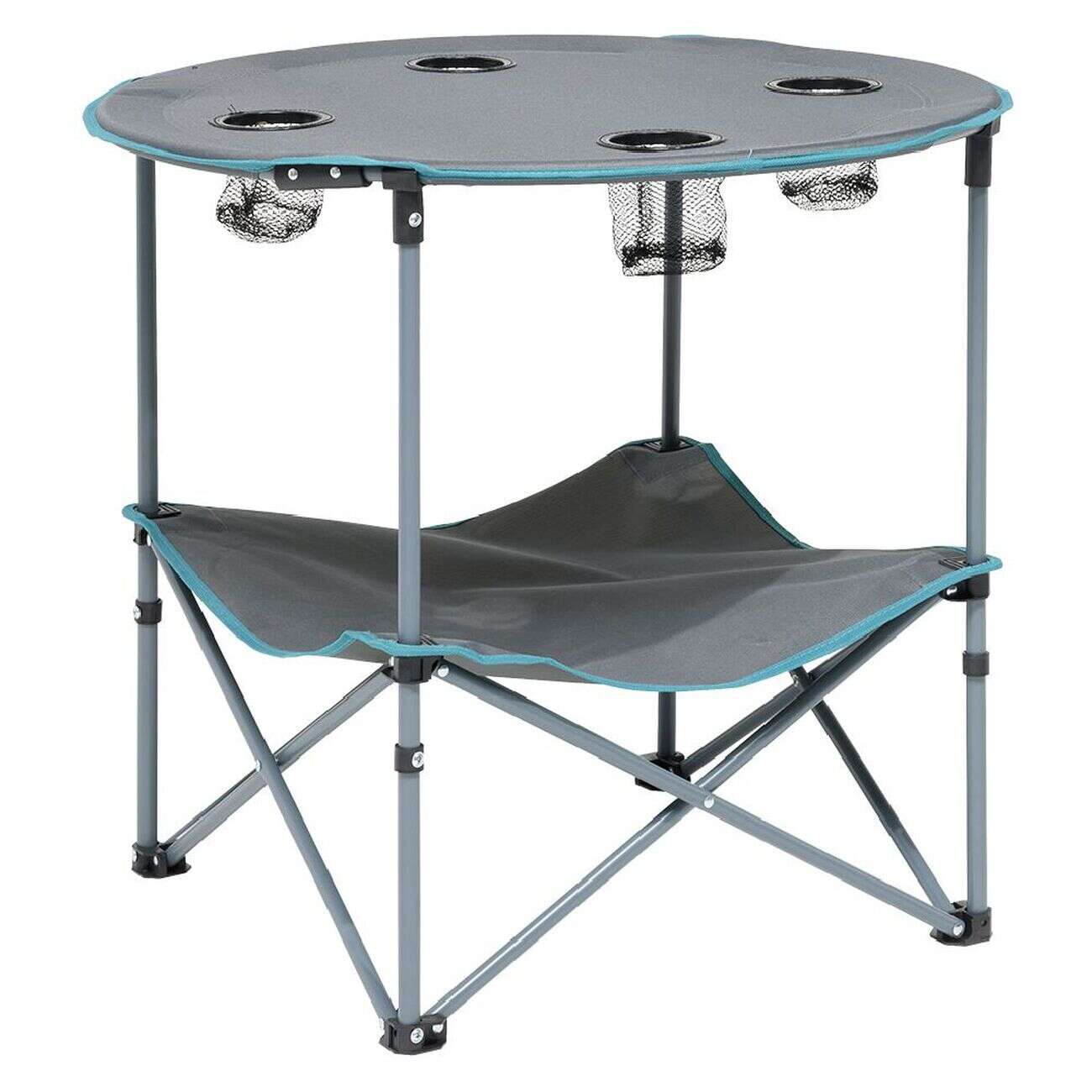 Table de camping pliable avec 4 porte-gobelets Ø70xH.60 cm