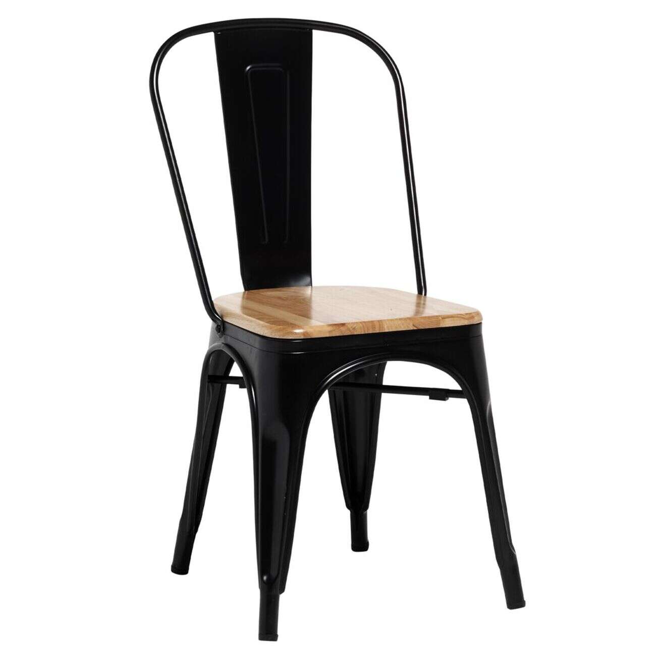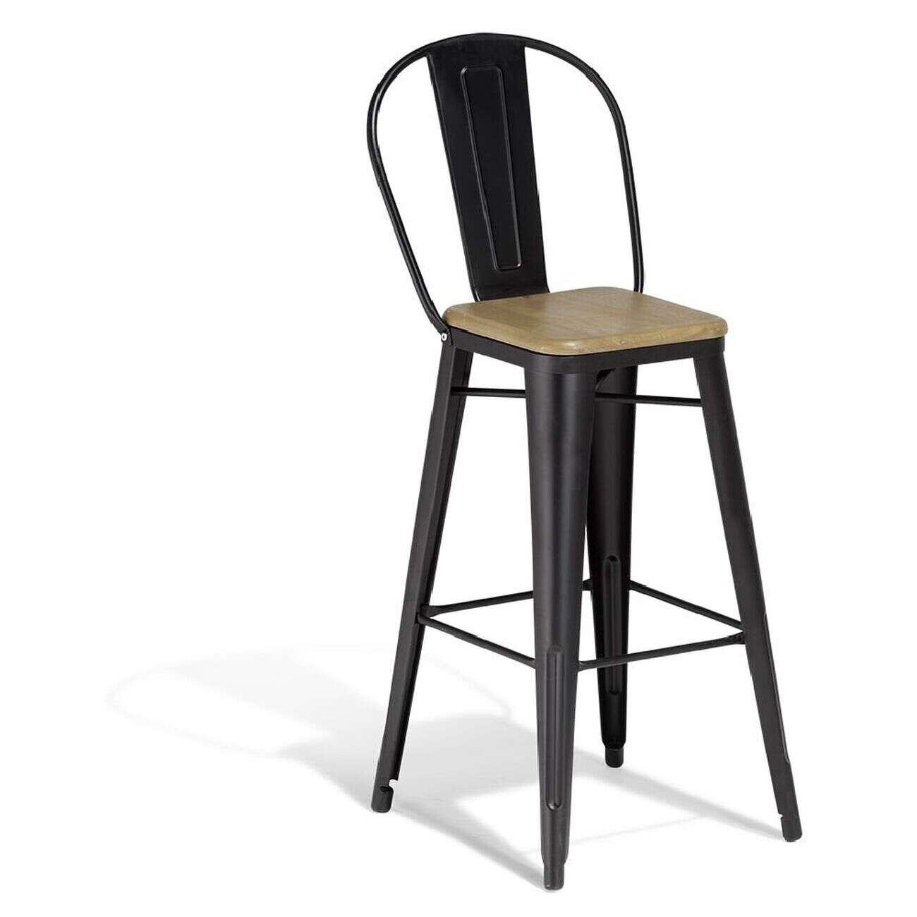 Chaise haute Fabrik métal noir et acacia 43x47xH.110 cm
