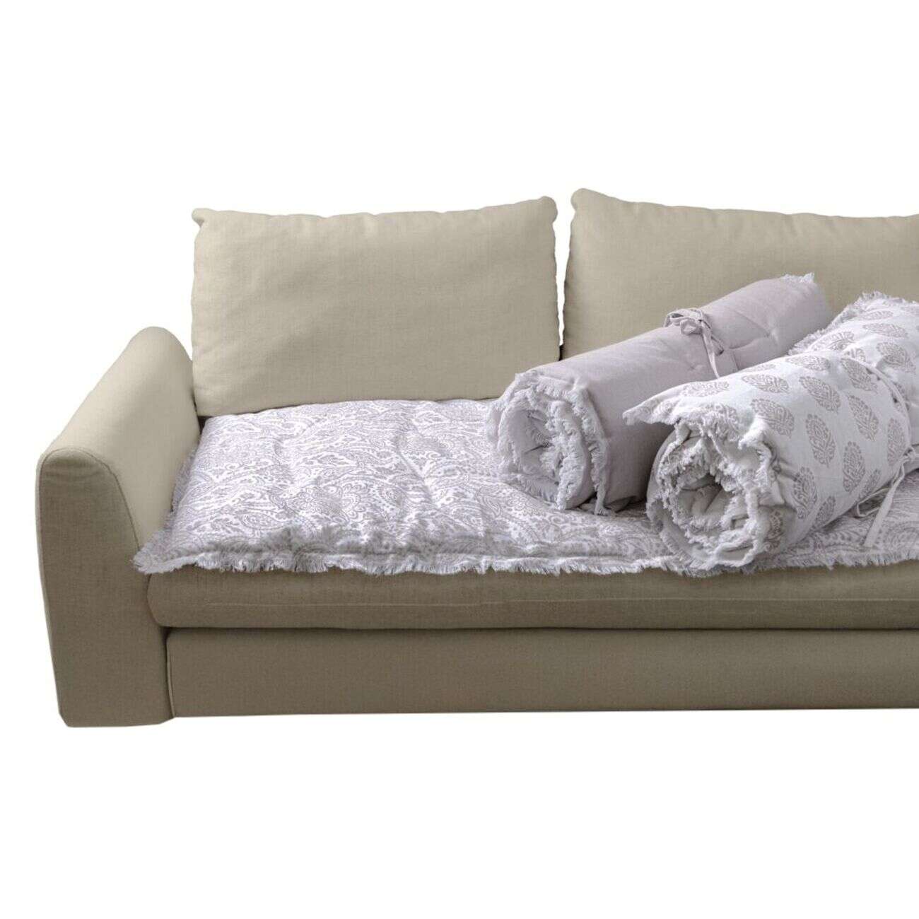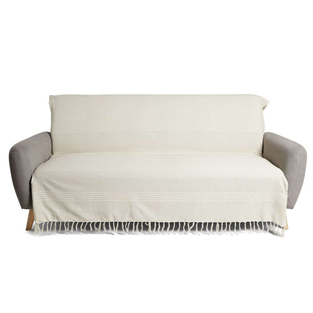 Jeté de canapé 170x250cm à franges 100% coton beige