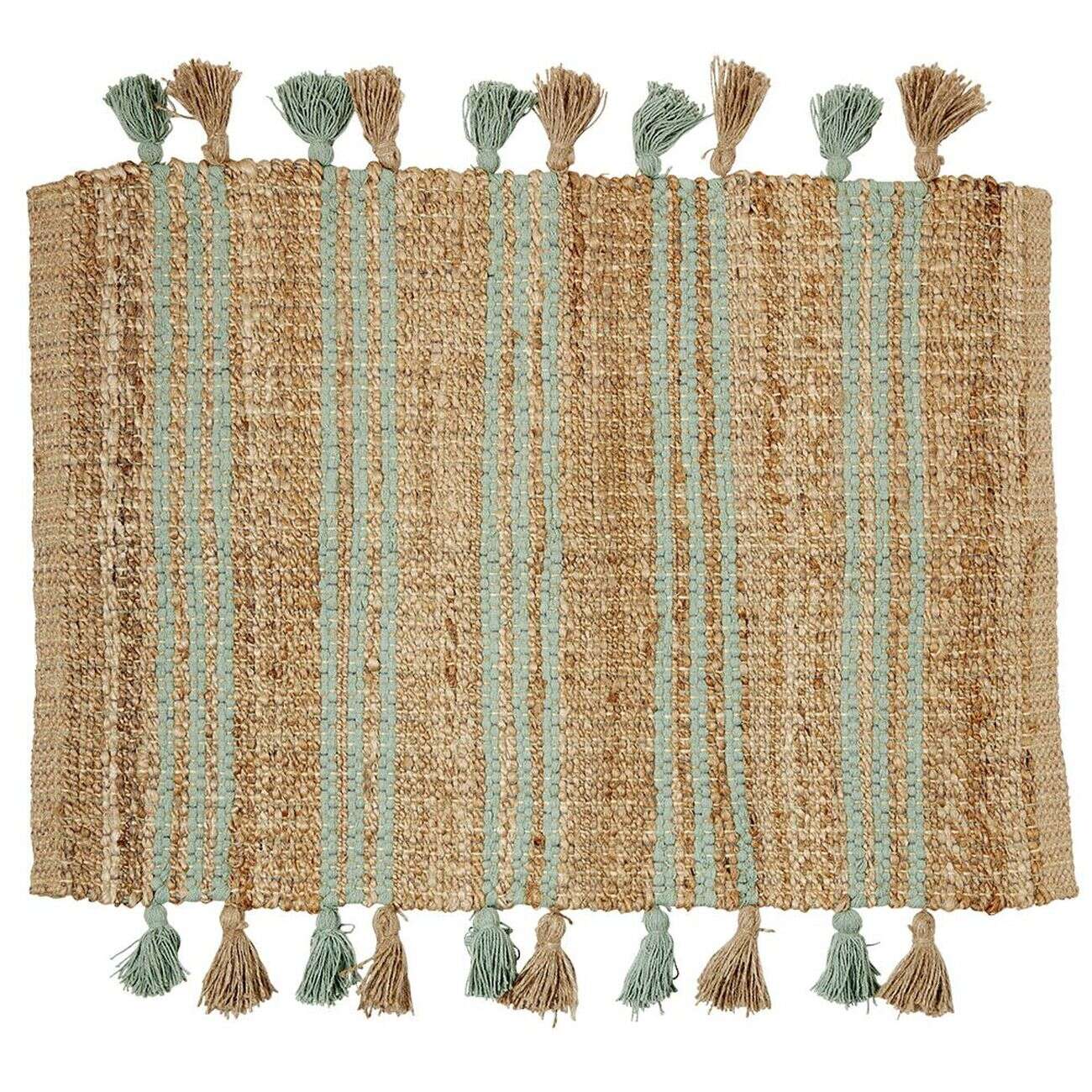 Tapis en jute vert et naturel avec pompons 60x90cm