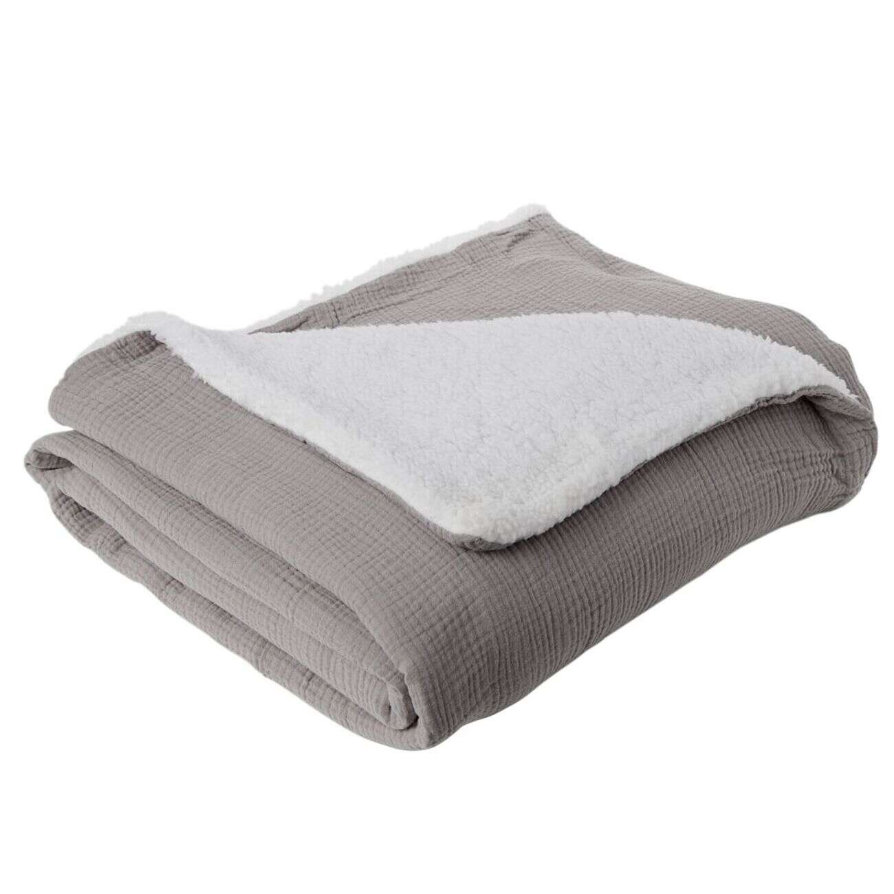 Plaid gaze de coton et sherpa 130x160cm gris