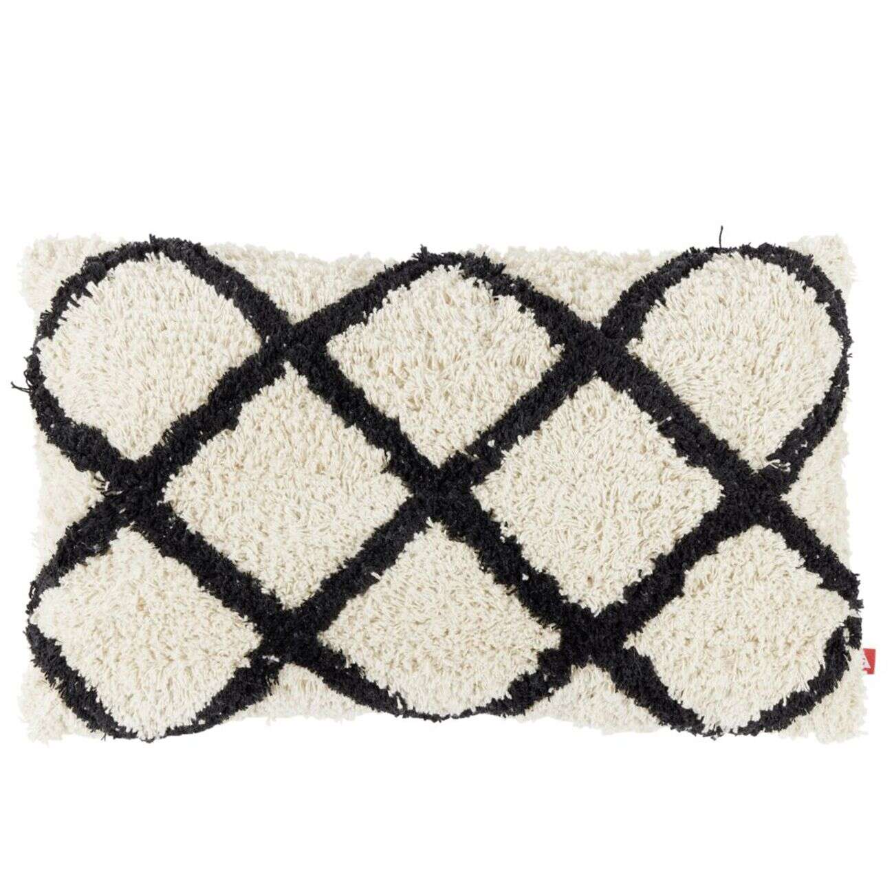 Coussin déco chevron tufté 30x50cm beige et noir