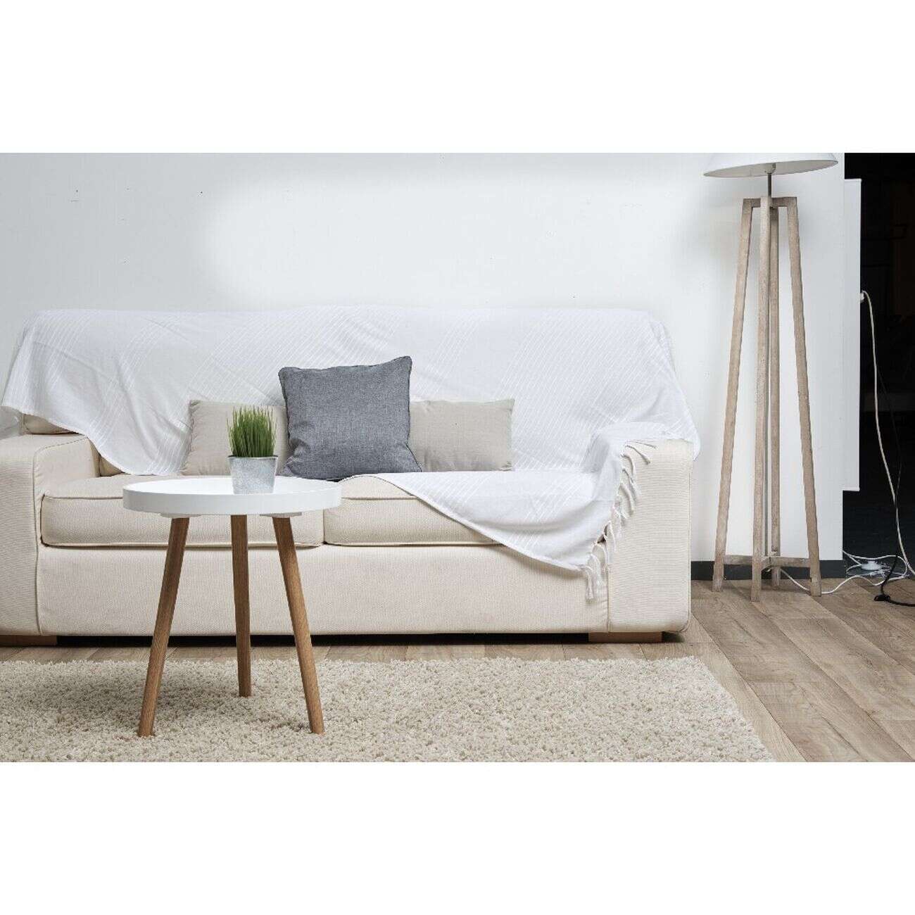Jeté de canapé à franges uni blanc