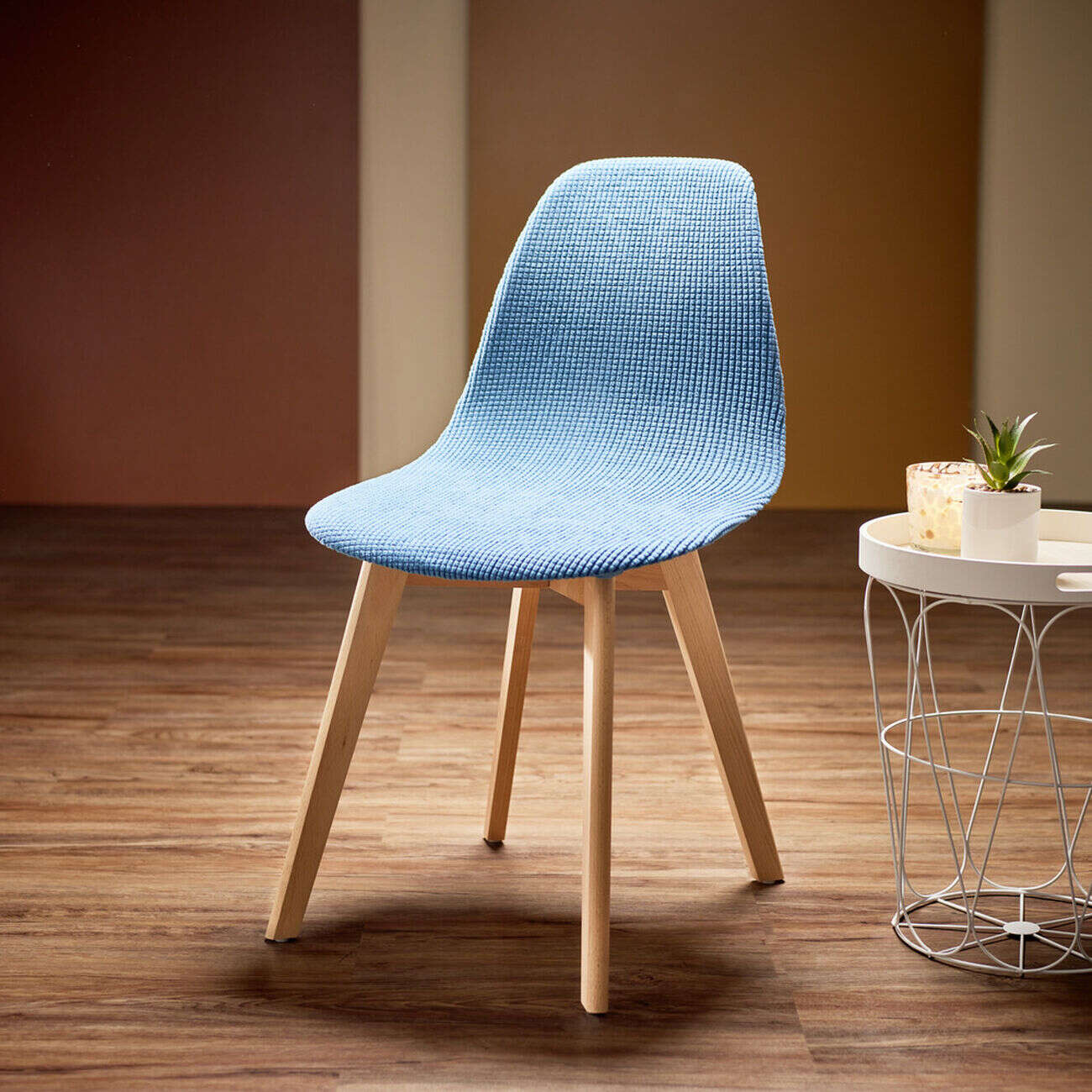 Housse de chaise scandinave extensible bleue 45x40xH45cm