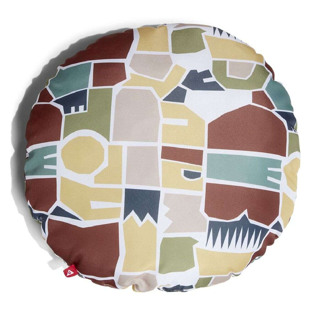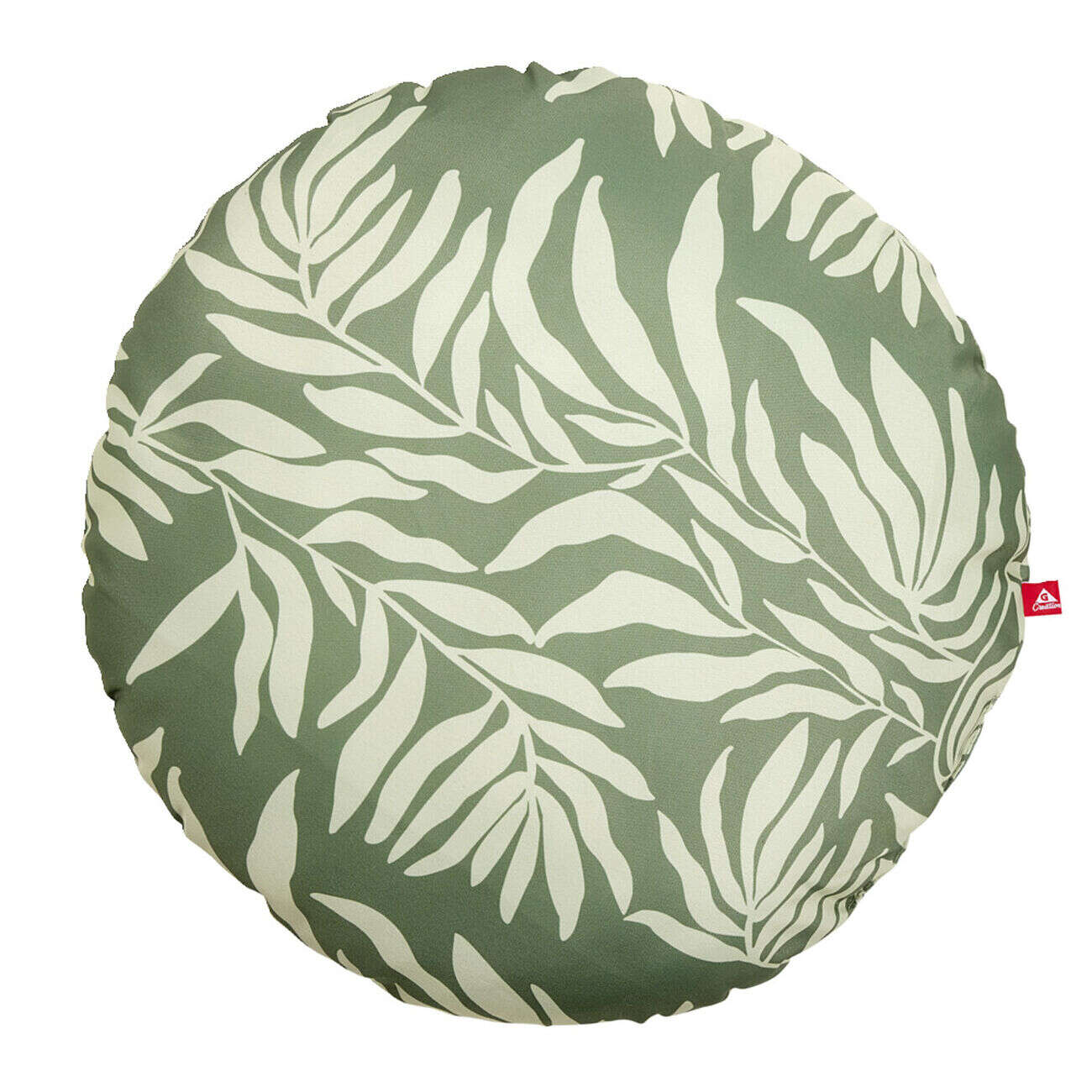 Coussin rond motif feuillage vert et beige Ø40xép12cm