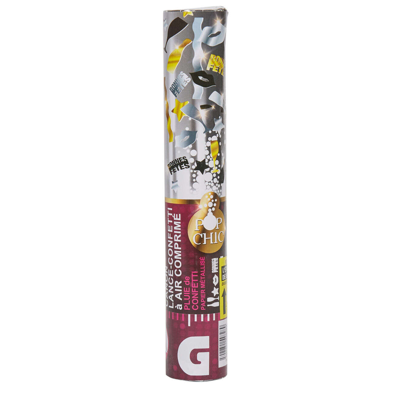 Canon à confettis noir blanc doré