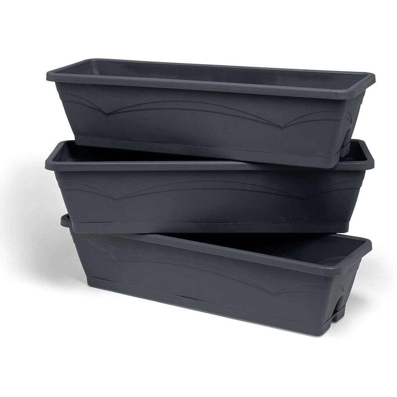 Lot de 3 balconnières 6L - 50x15x17cm plastique gris