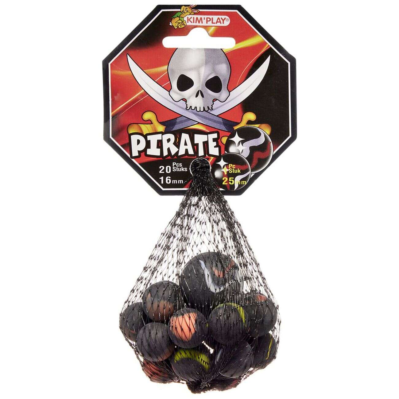 Bille en verre x20 + 1 boulard noir Pirates