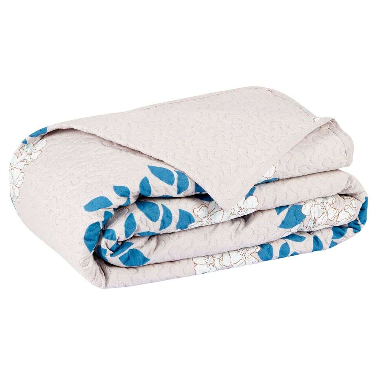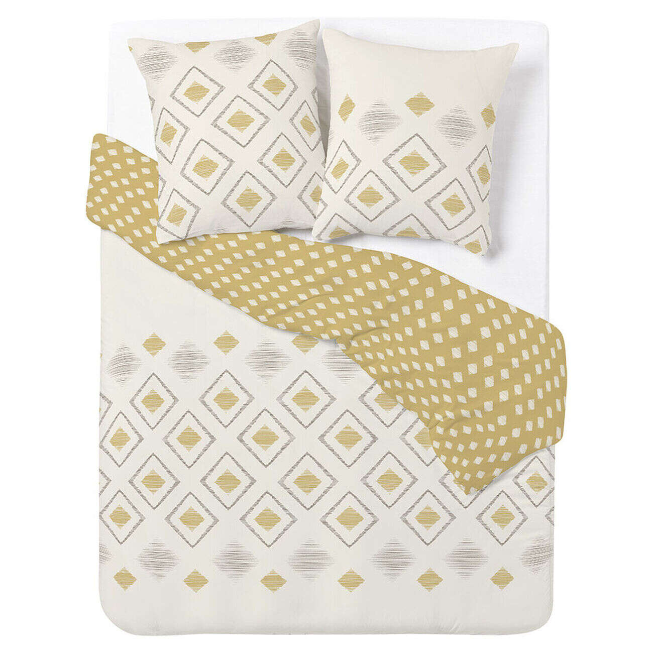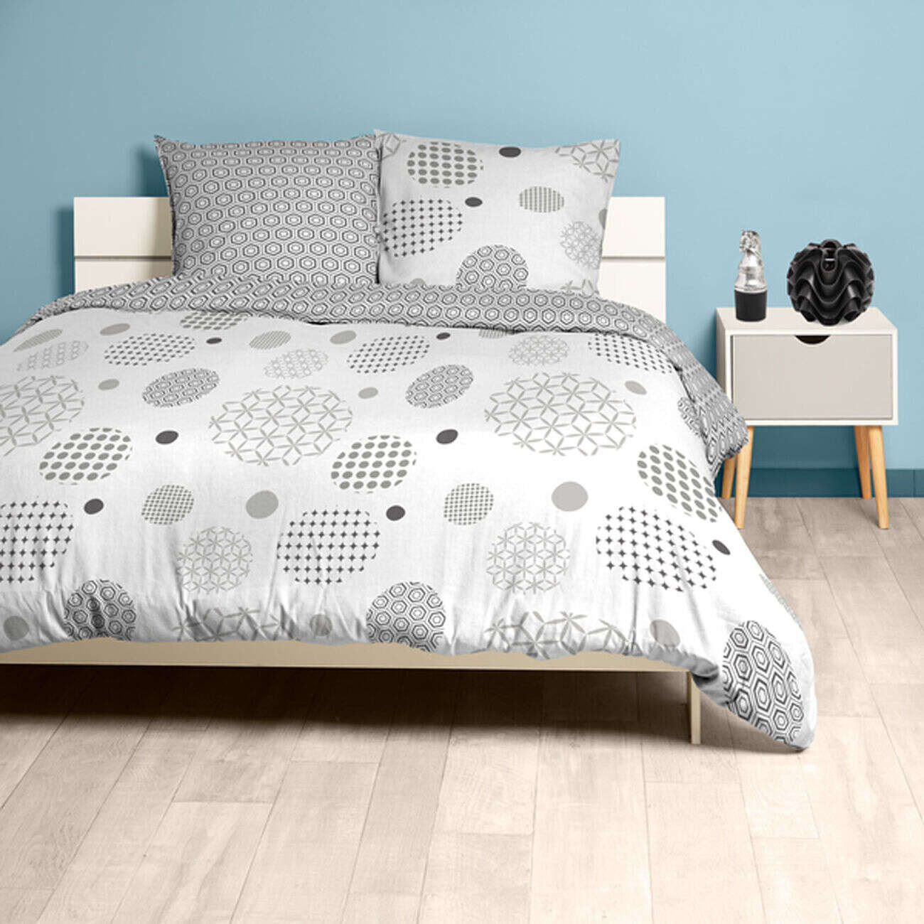 Parure de lit 2 places blanche et taupe motifs plumetis