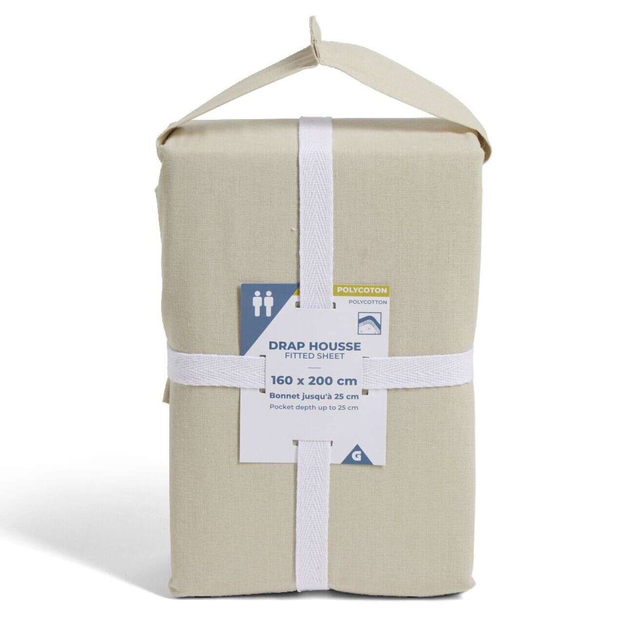 Drap housse 160x200cm polycoton beige