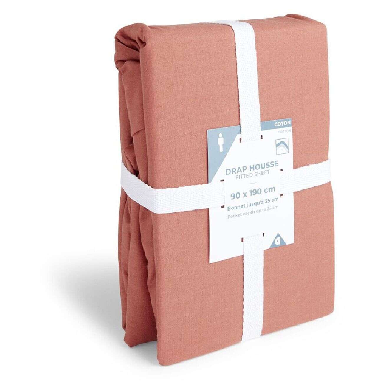 Drap housse 90x190cm 100% coton rouge brique
