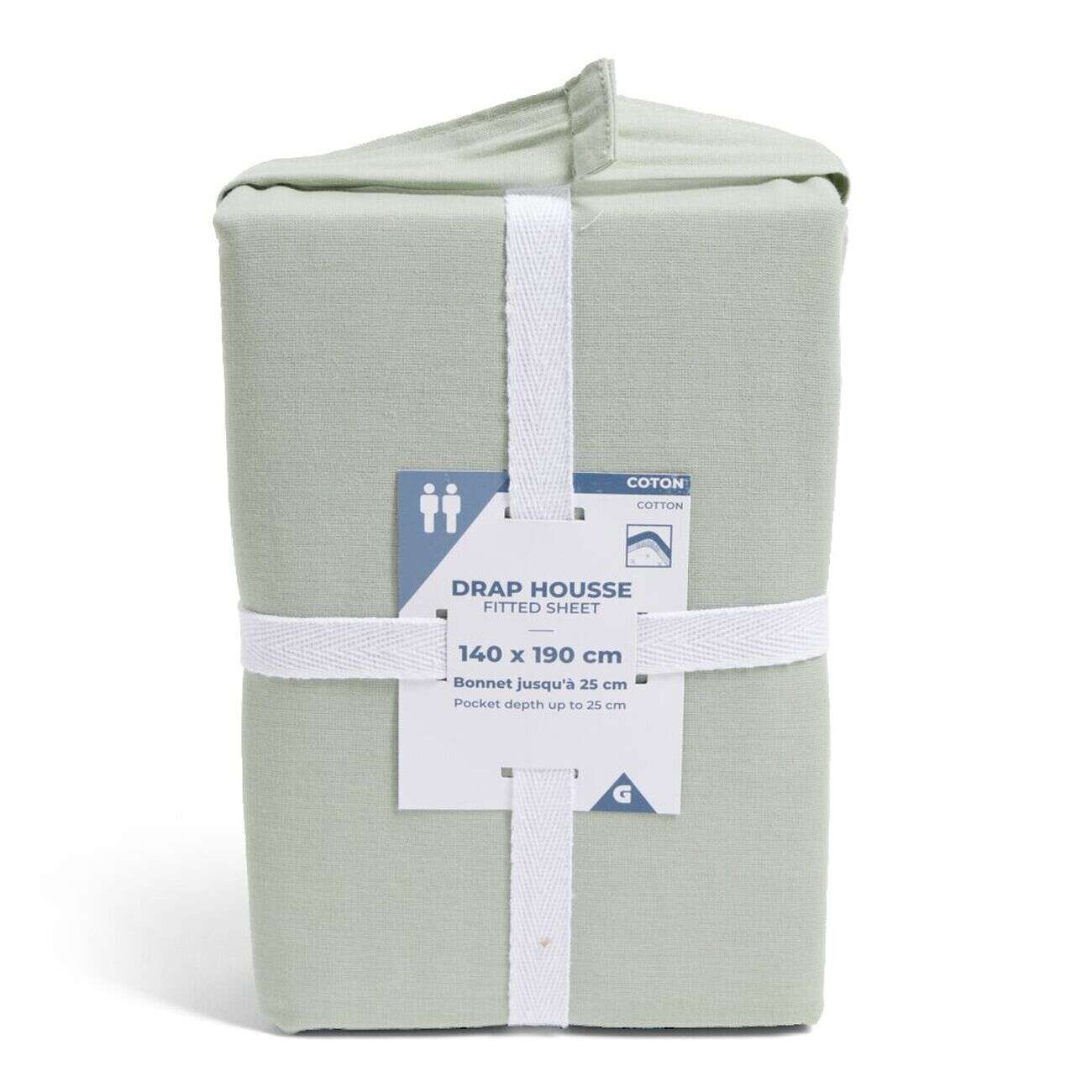 Drap housse 140x190cm 100% coton vert céladon