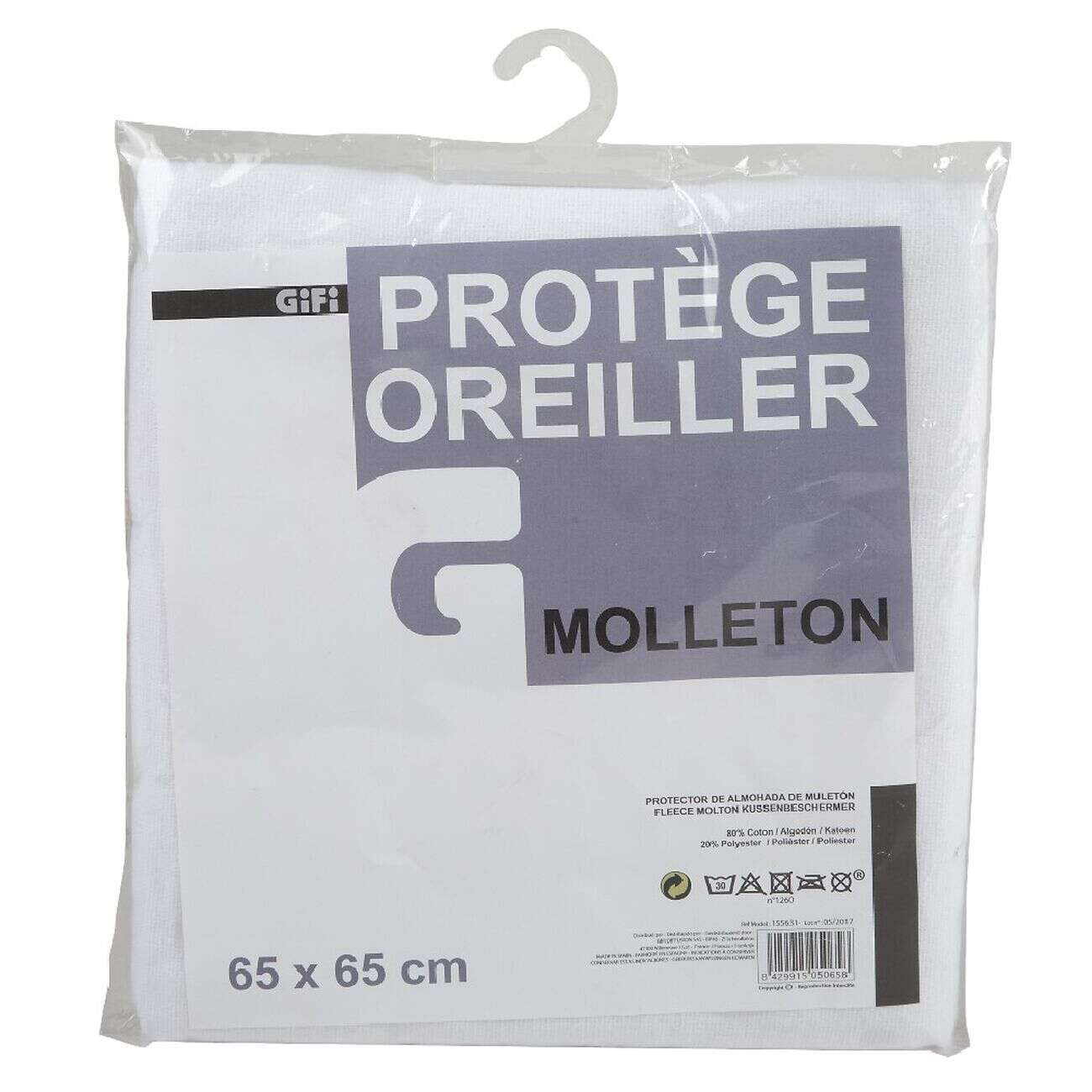 Protège oreiller Molleton anti acariens blanc 65x65 cm