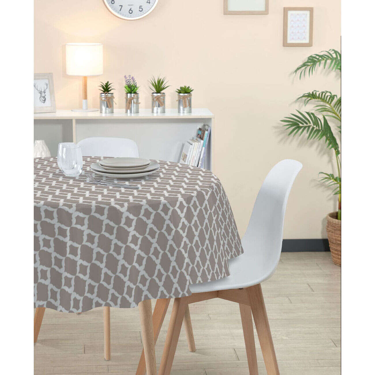 Nappe en tissu blanc motif plumes