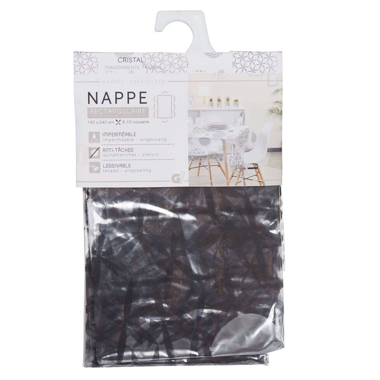 Nappe rectangulaire transparente motif graphique noir