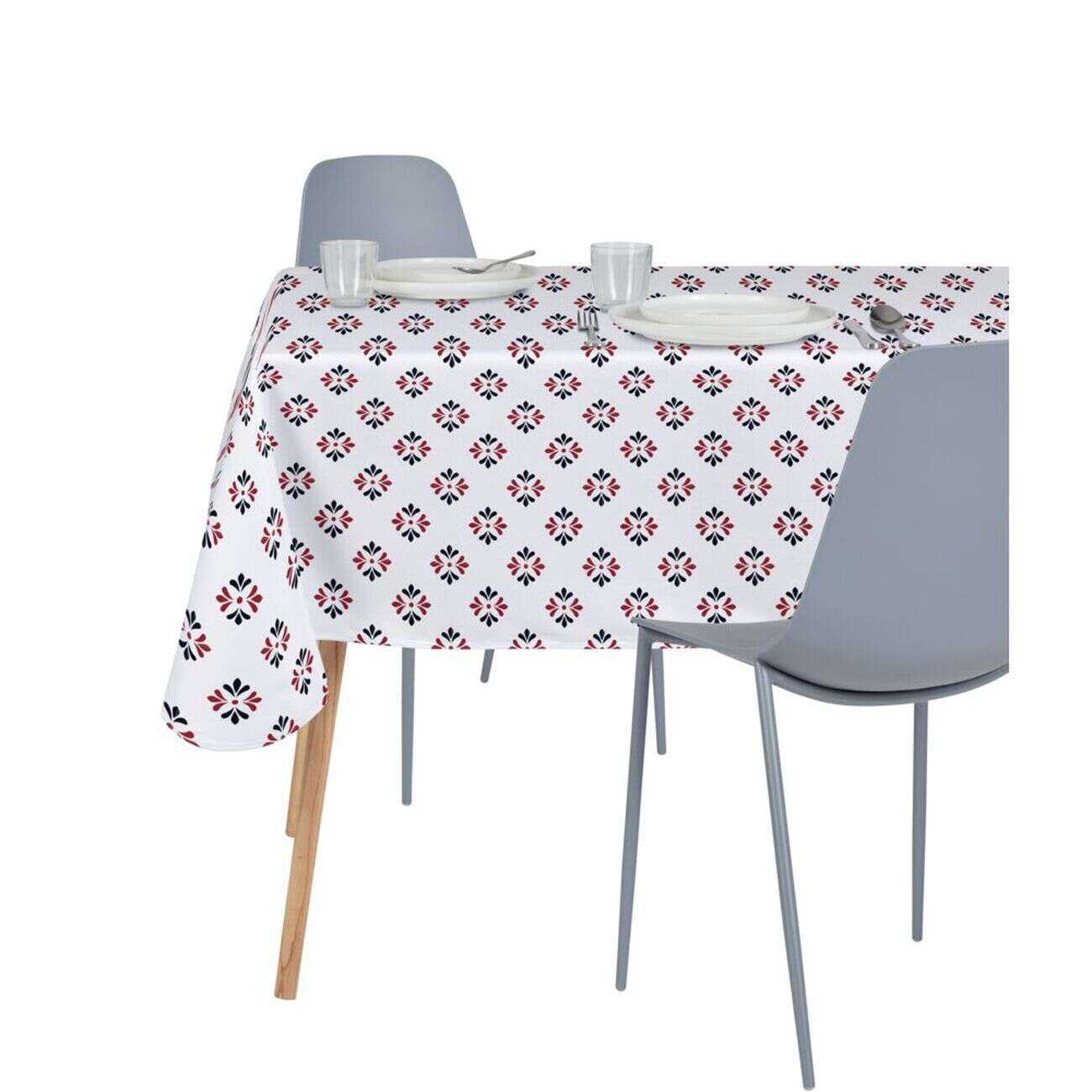 Nappe rectangulaire en tissu motif petits traits 140x250 cm