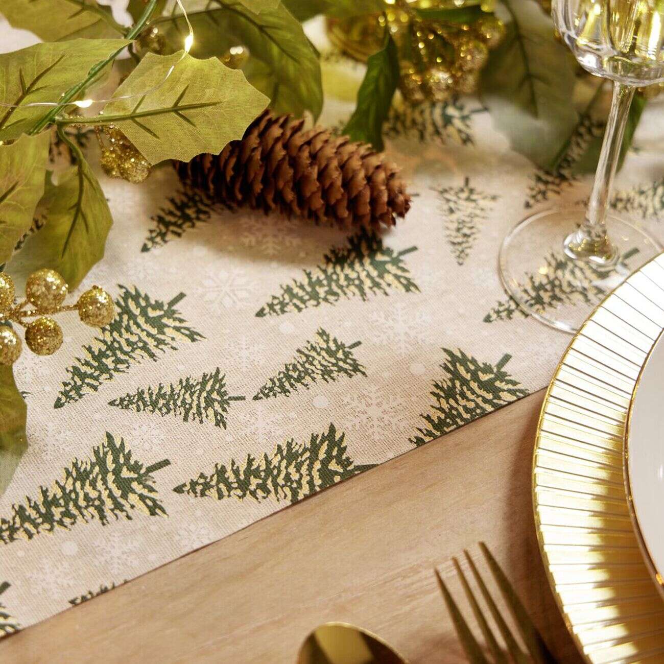 Chemin de table Noël blanc motifs sapins et flocons 3m