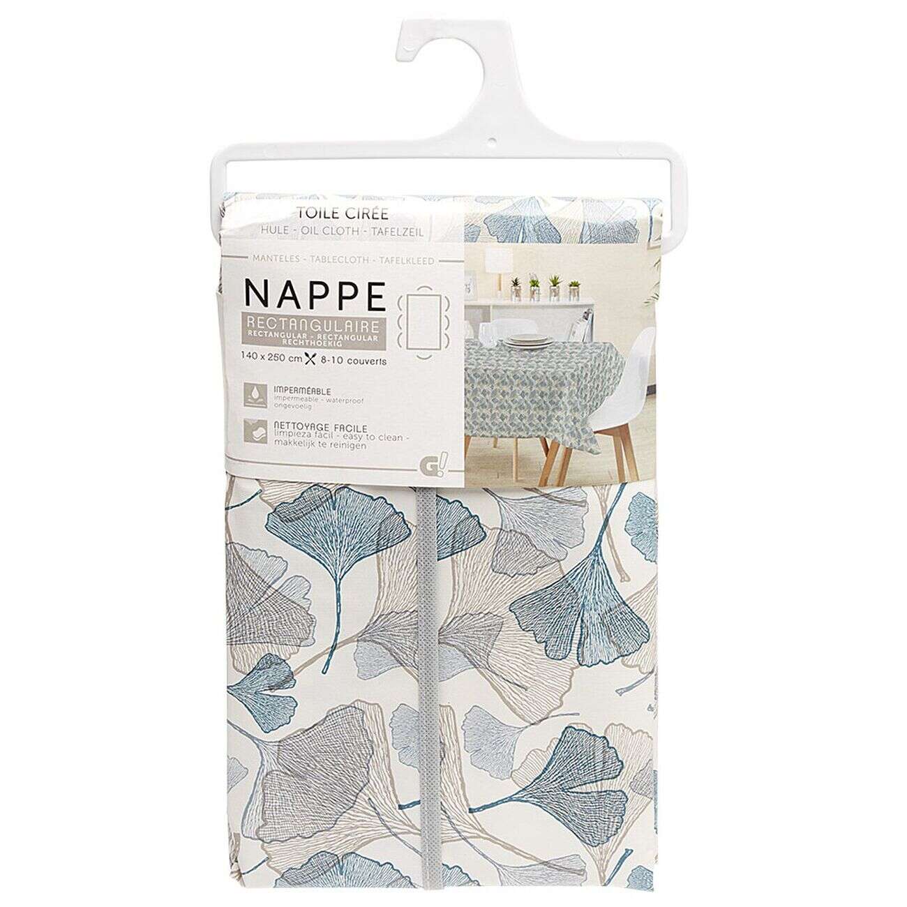 Toile cirée rectangulaire imprimée fleur pvc bleu et blanc