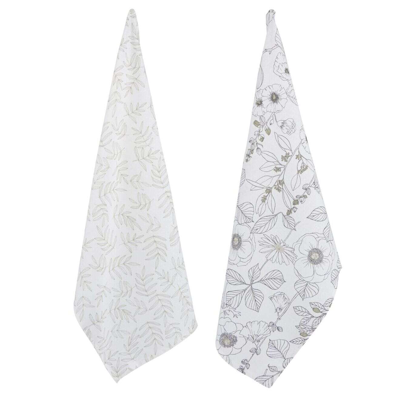 Torchon x2 coton beige motif végétal 45x65cm