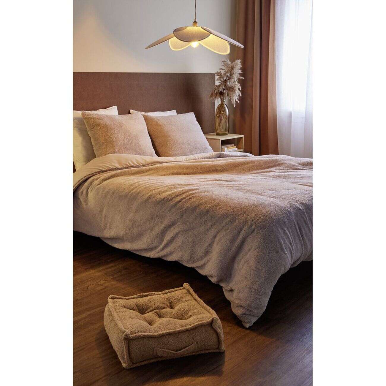 Suspension tulipe laine bouclée blanche Ø25xH70cm