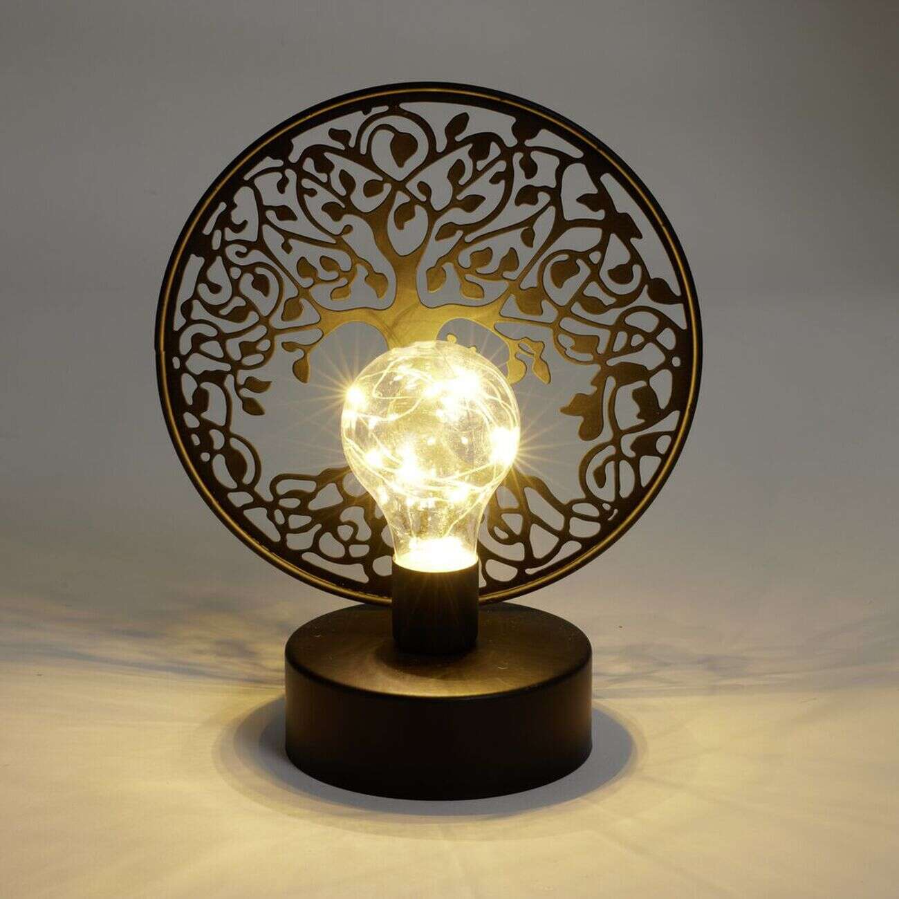 Lanterne LED arbre de vie métal noir 18x10xH21,5cm