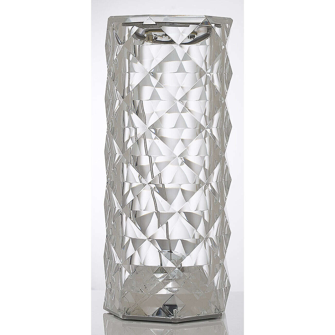 Lampe de table cylindrique design cristal transparent