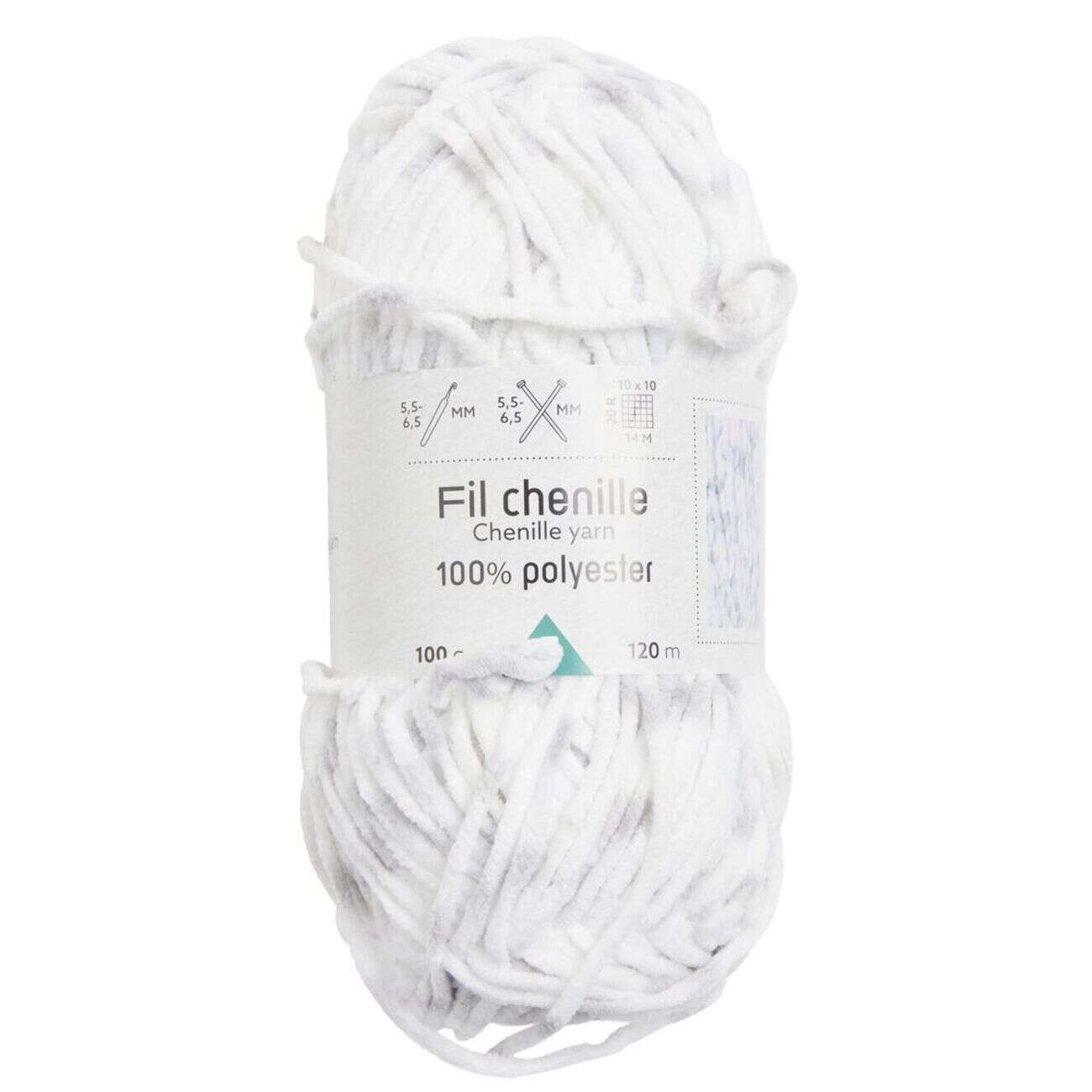 Pelote de fil à tricoter chenille blanc 120m