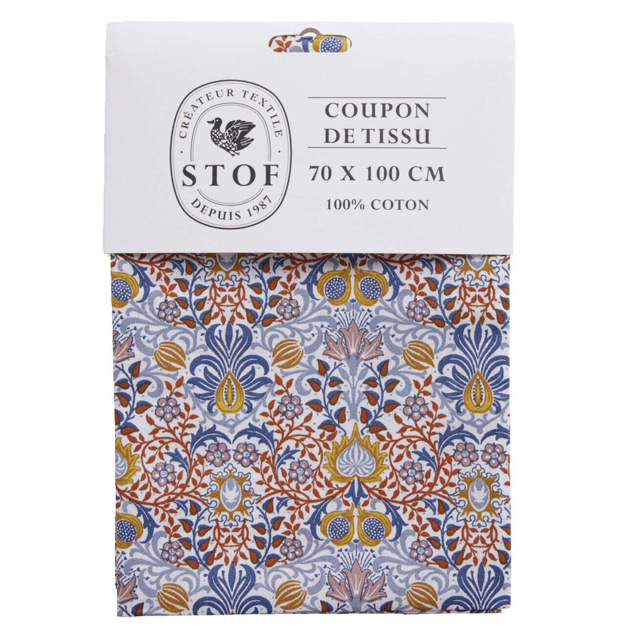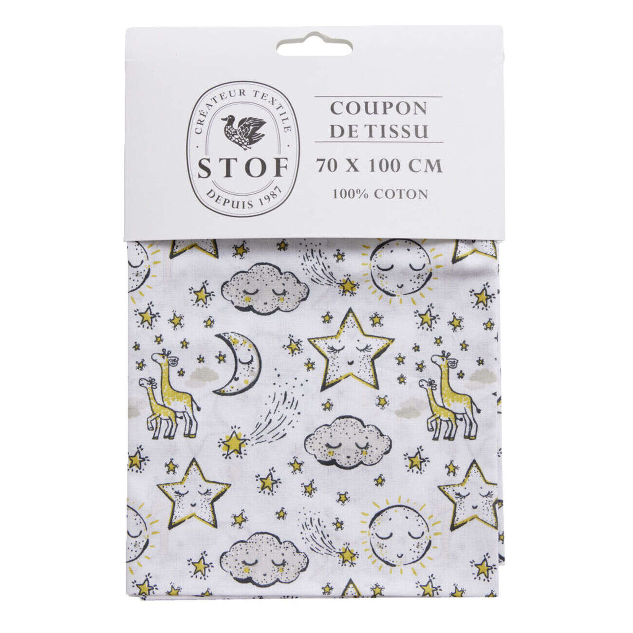 Coupon tissu imprimé Solune 70x100cm coton jaune
