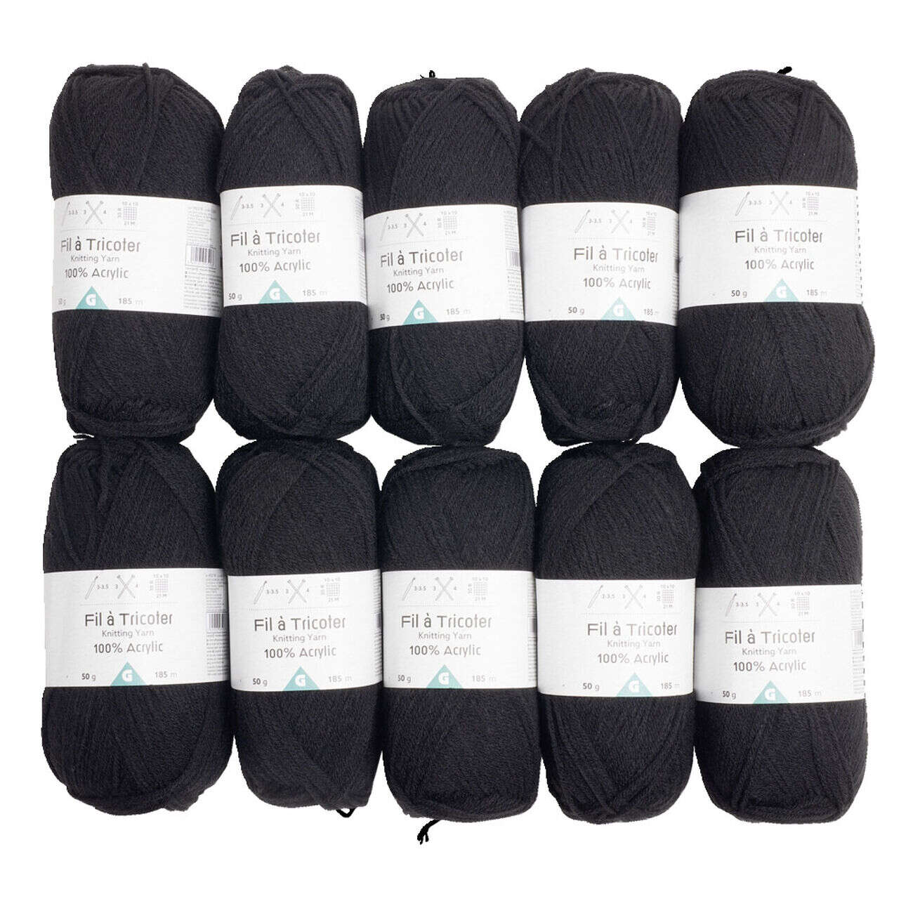 Pelote de fil à tricoter en acrylique noir x10
