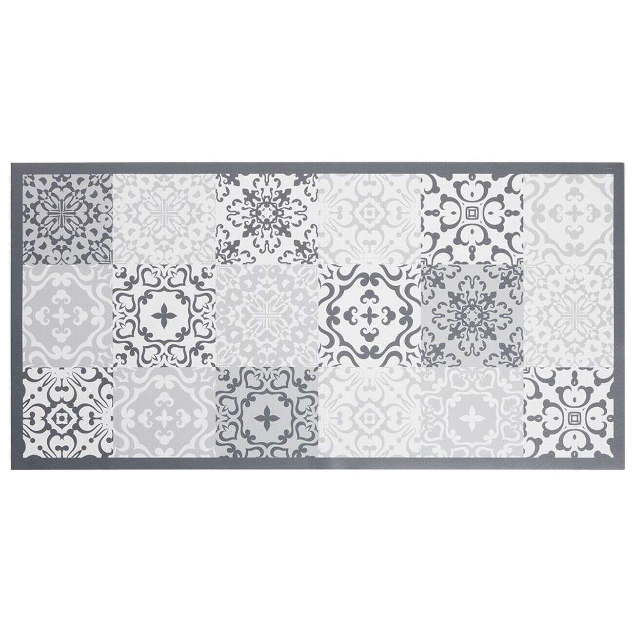 Tapis vinyle imprimé carreau de ciment gris L.99 cm