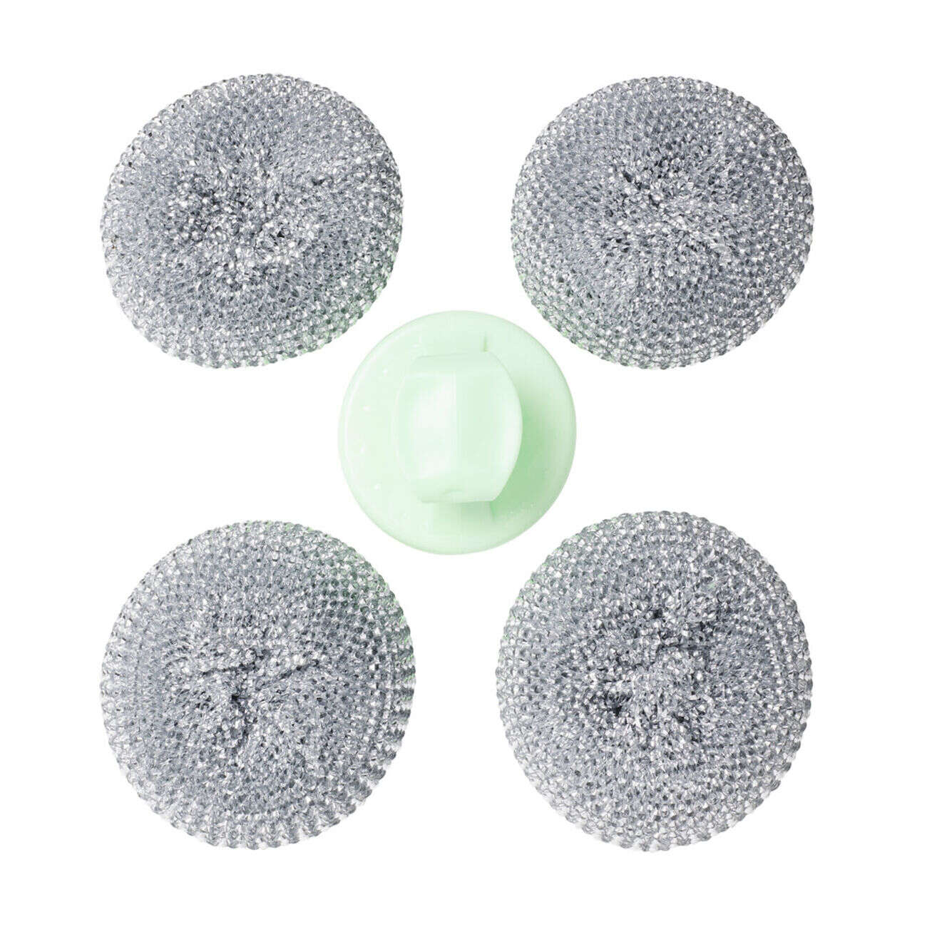 Éponge boule grattante x4 acier inox Ø8cm avec 1 poignée
