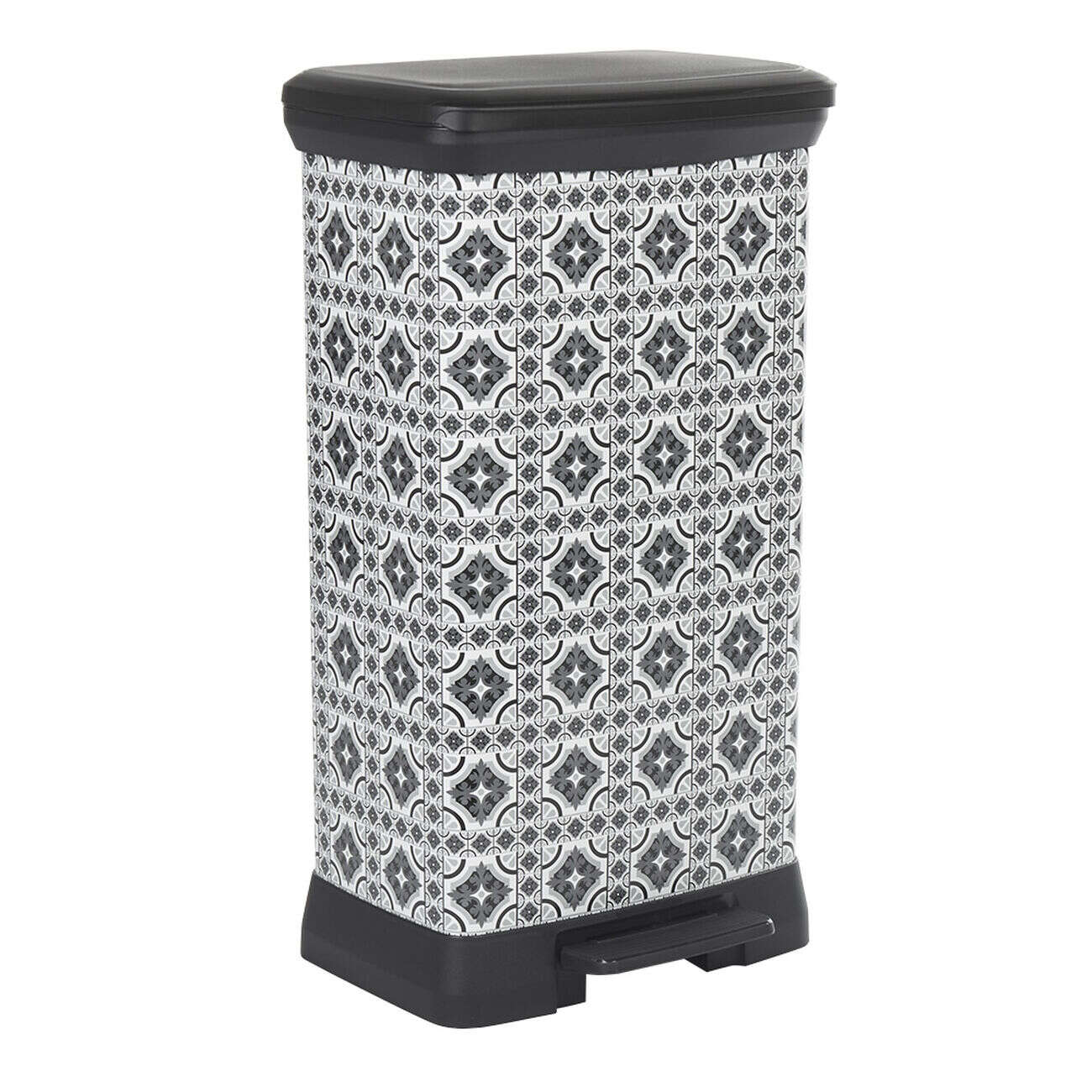Poubelle à pédale motif carreau de ciment gris et blanc 50 L