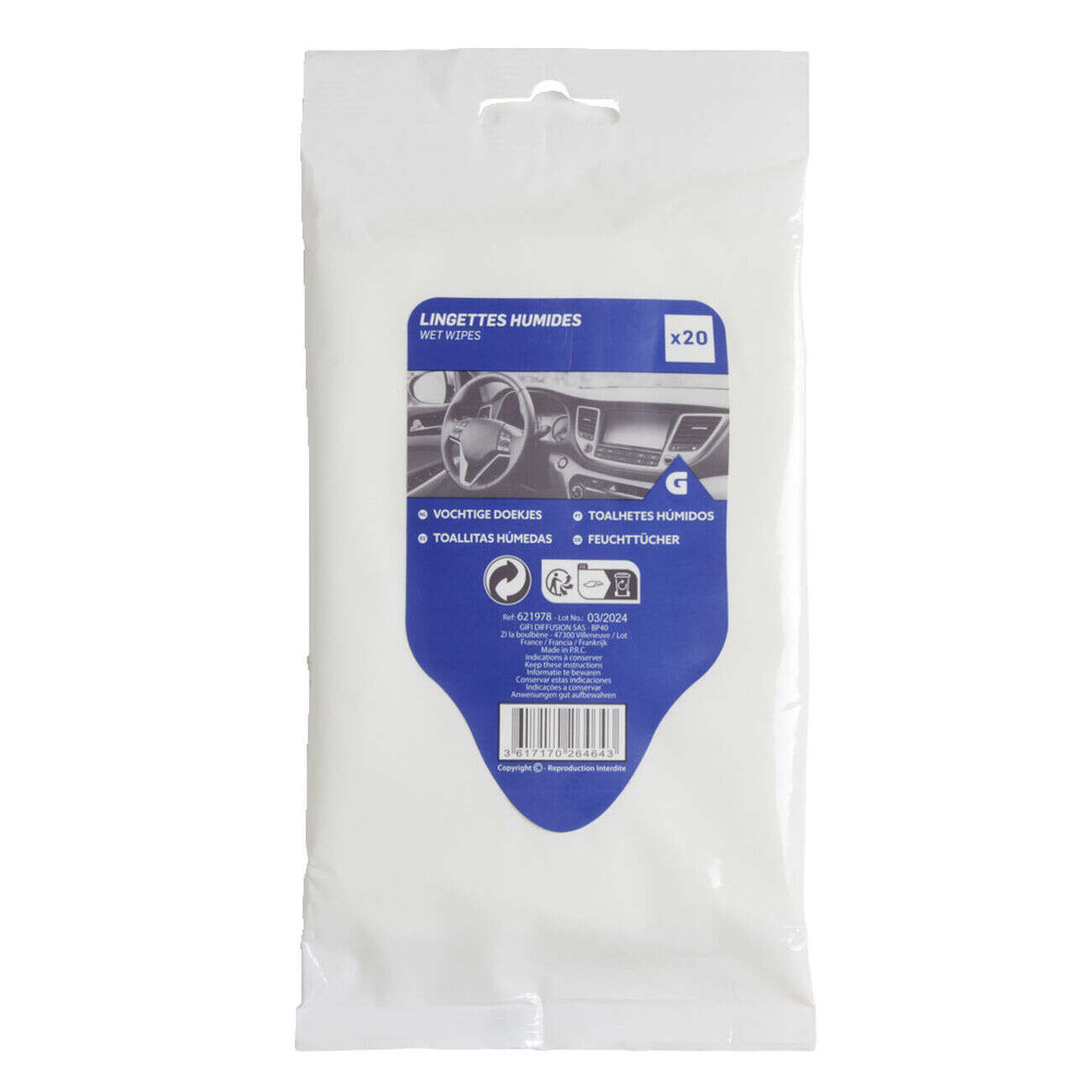 Lot de 20 lingettes humides pour voiture