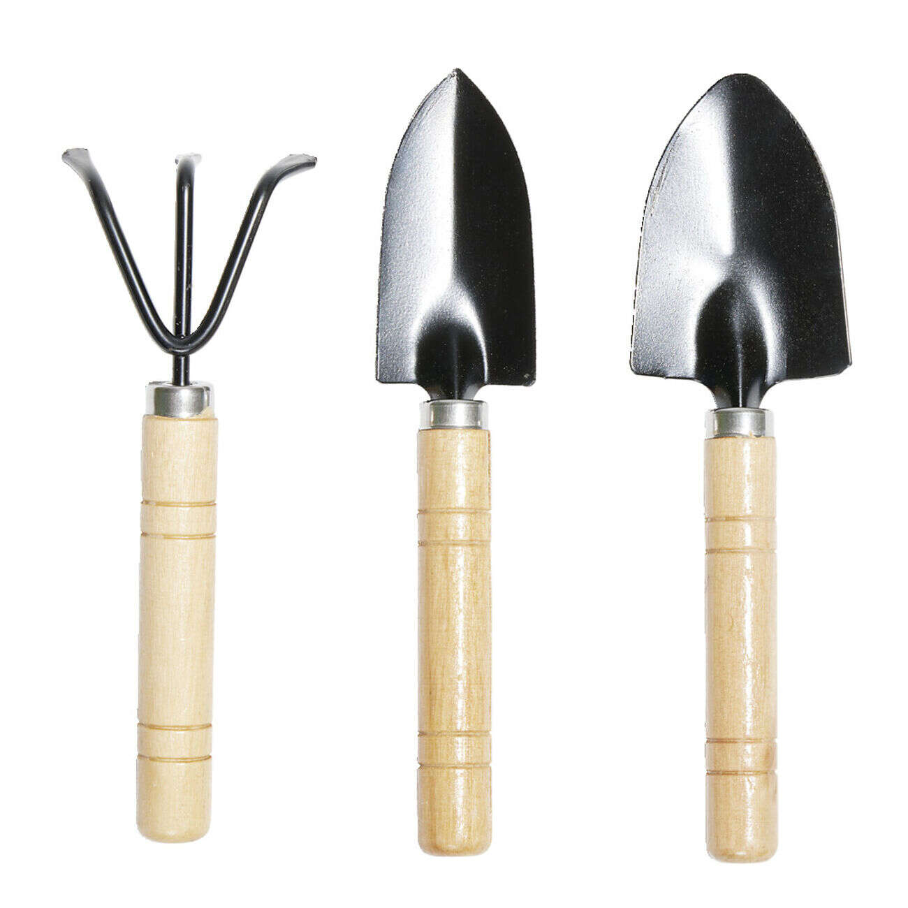 Lot de 3 outils de jardin en bois pelle/râteau/bêche