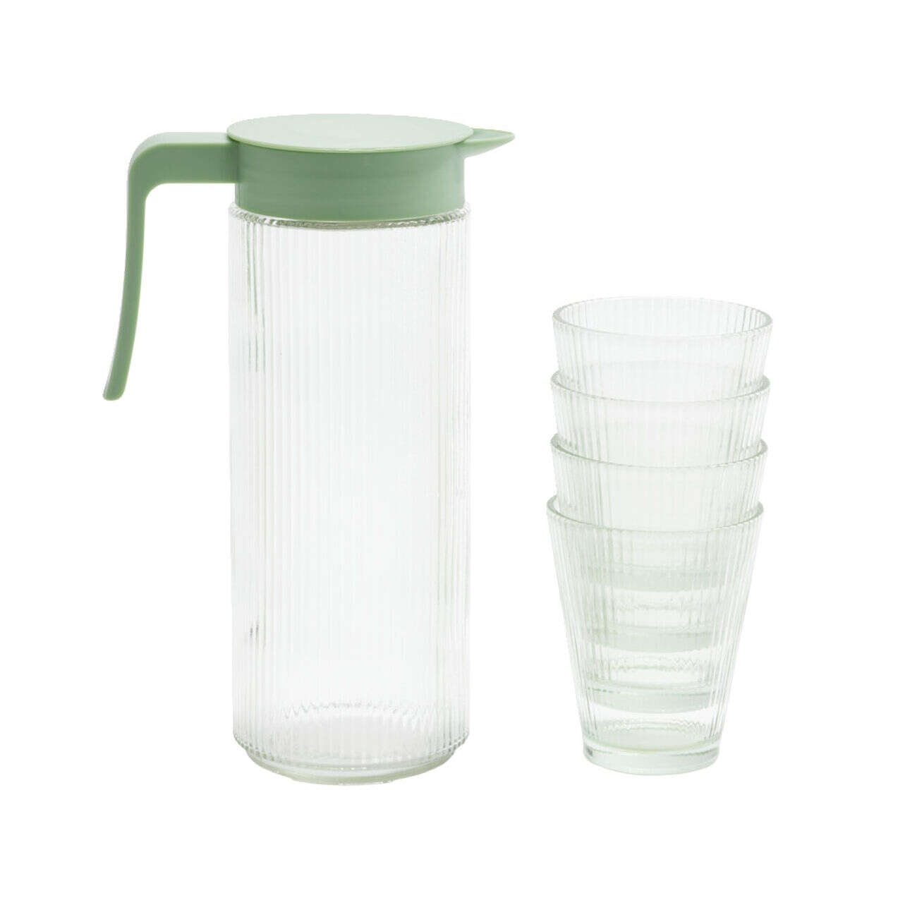Pichet en verre et plastique vert avec 4 verres