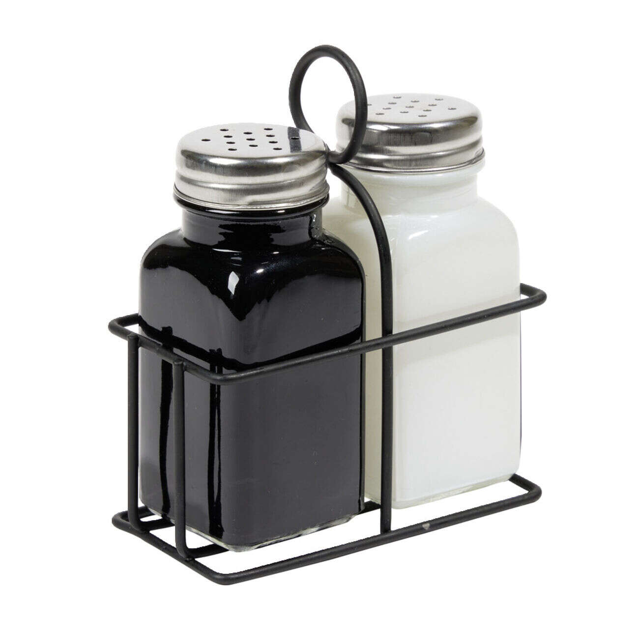 Salière et poivrière en verre et fer 9,5x5xH12cm