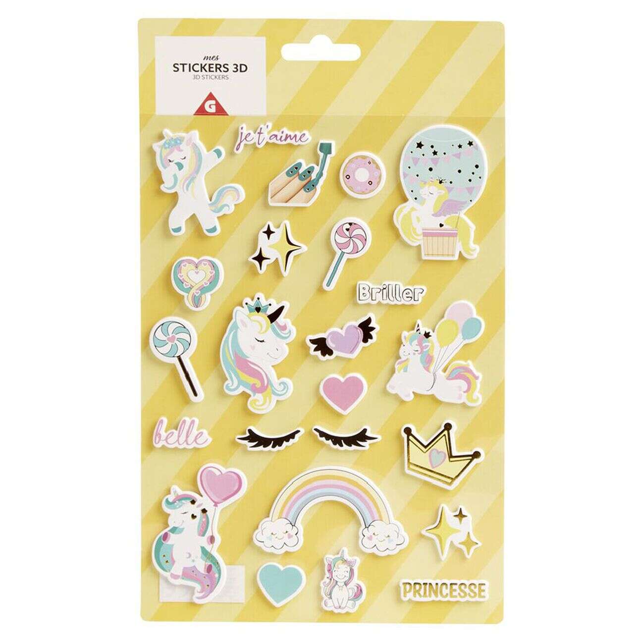 Sticker 3D enfant 1 feuille licorne ou ouistiti