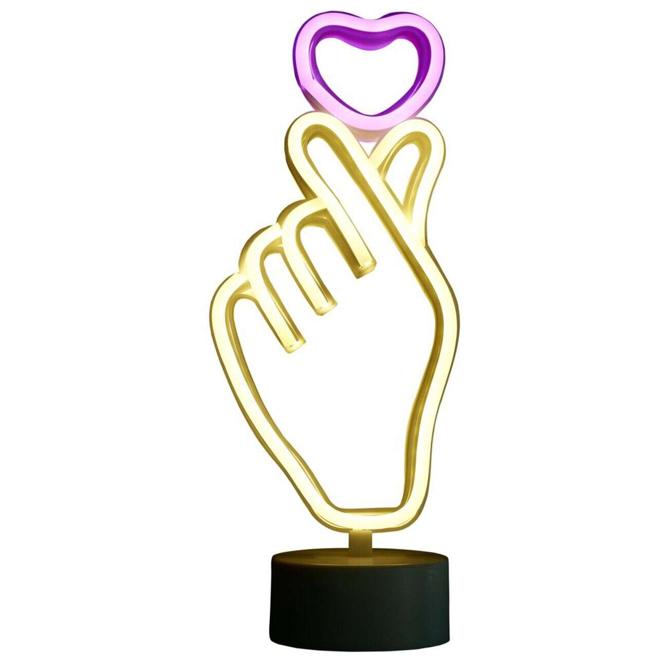 Néon LED à poser forme main avec coeur 17x23,5cm